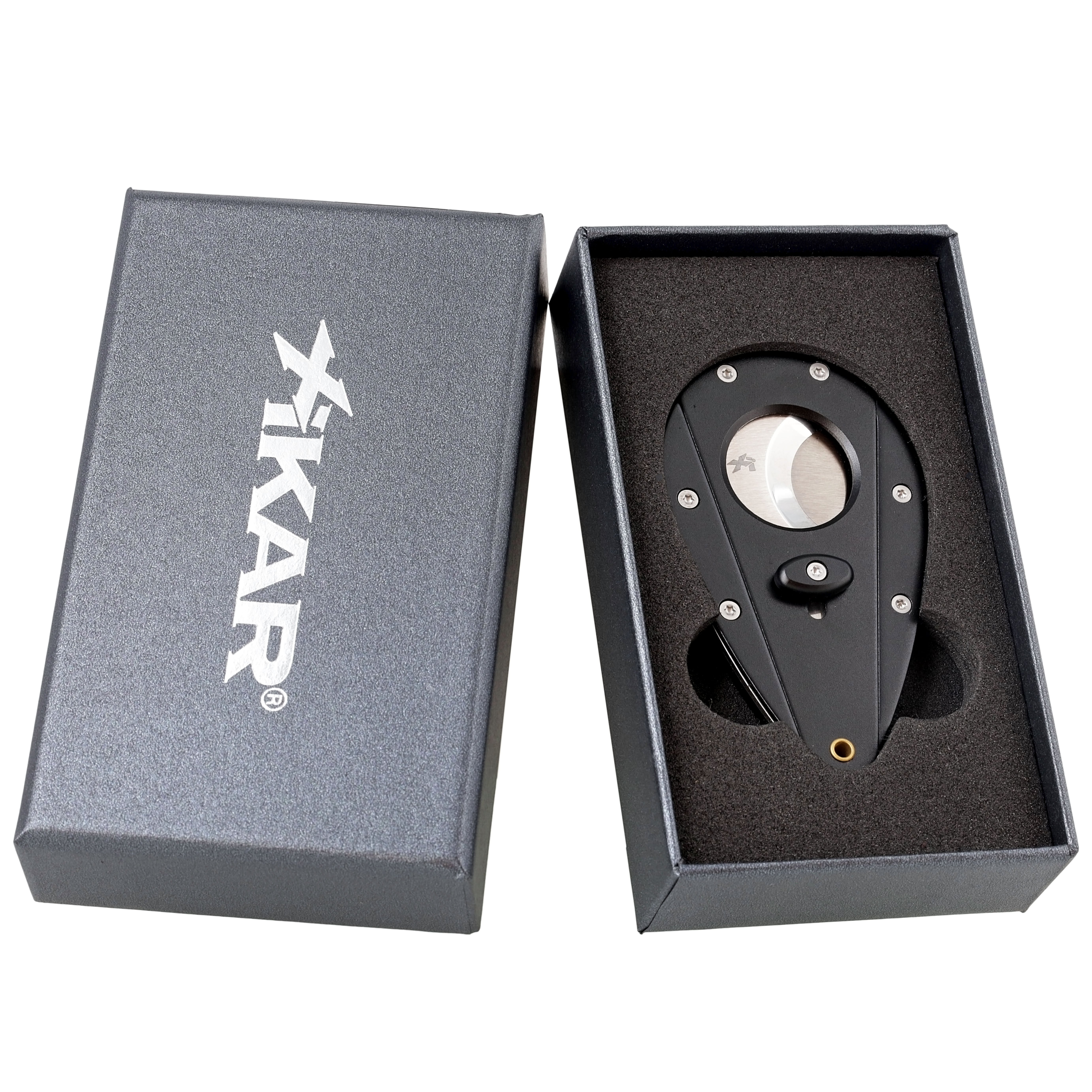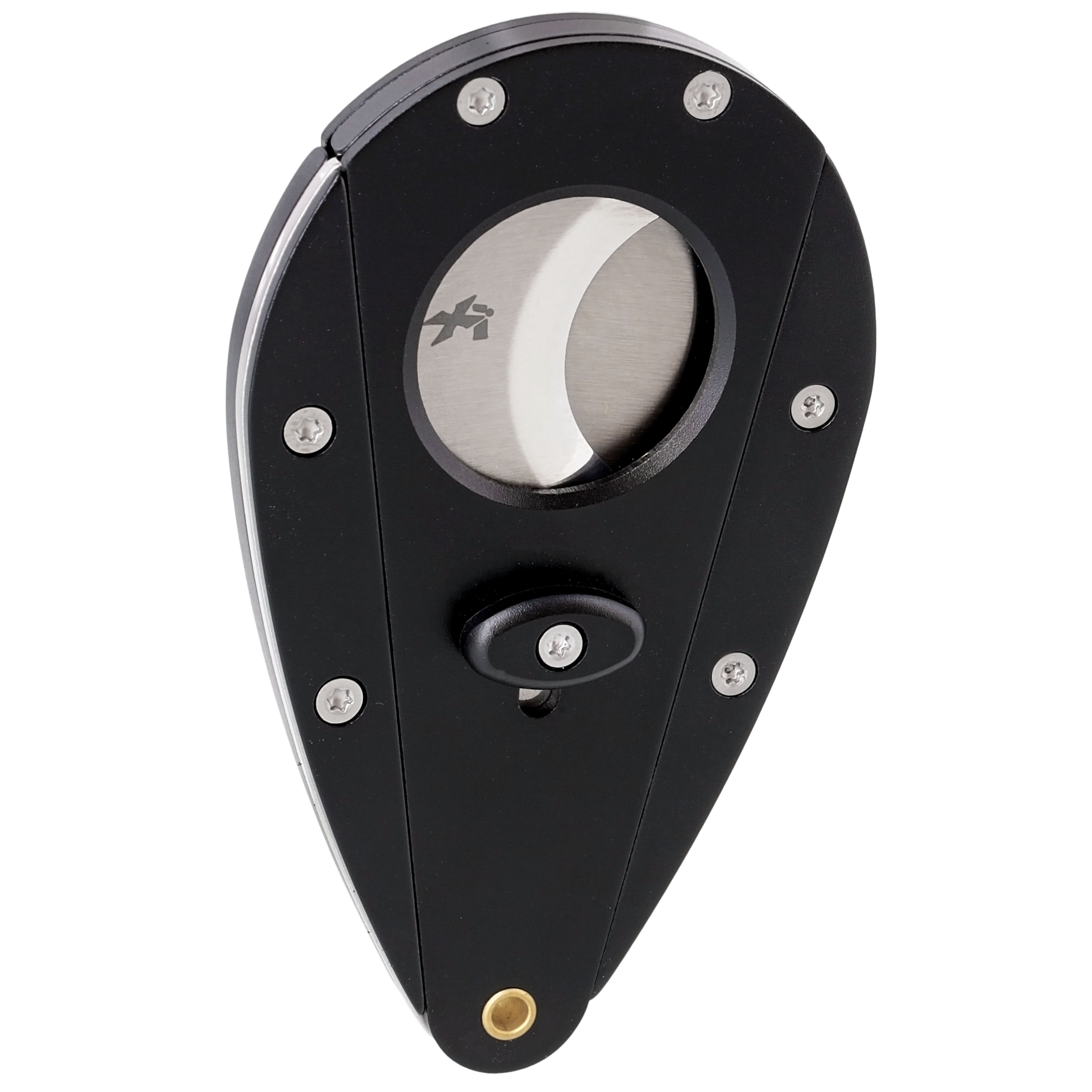 The spring-loaded, double guillotine, ergonomic design gives this cutter an extraordinary feel and performance. A button release mechanism snaps open the two HRC57 stainless steel blades. Possibly one of the finest cutters in the market, and it comes with a limited lifetime guarantee! Weighs only 1.9 oz. Gift boxed.