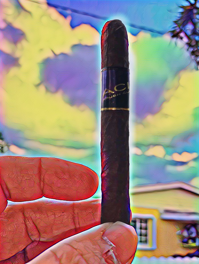 I’ve never been a fan of flavor infused cigars. But, as they say, “never say never”. So when a friend offered me an Acid Purple Krush, I didn’t it refuse it. I liked the small panatela vitola (4” by 32 ring). Lately, I don’t have time to smoke big, long cigars, so this shorty was something I could spend 15 minutes with. The Acid Purple Krush has a dark, maduro wrapper with a Nicaraguan filler. The wrapper on mine was a little cracked and it started to unravel, but it did not greatly affect the smoking experience. A pre-lit sniff hinted of anise and mint. The cold draw was nice and easy. From the first third and all the way through, the Acid Purple had a straight forward tobacco flavor with some sweetness and a little peppery. Which surprised me, since I was expecting the anise and mint to become more pronounced. The draw was a little tight, and the burn was consistent throughout. Overall, I liked the Acid Purple Krush because unlike other flavor-infused sticks, the added flavors were not overpowering. If you like flavored cigars, but don’t have a lot time, I really recommend the Acid Purple (Juggernaut) Krush.