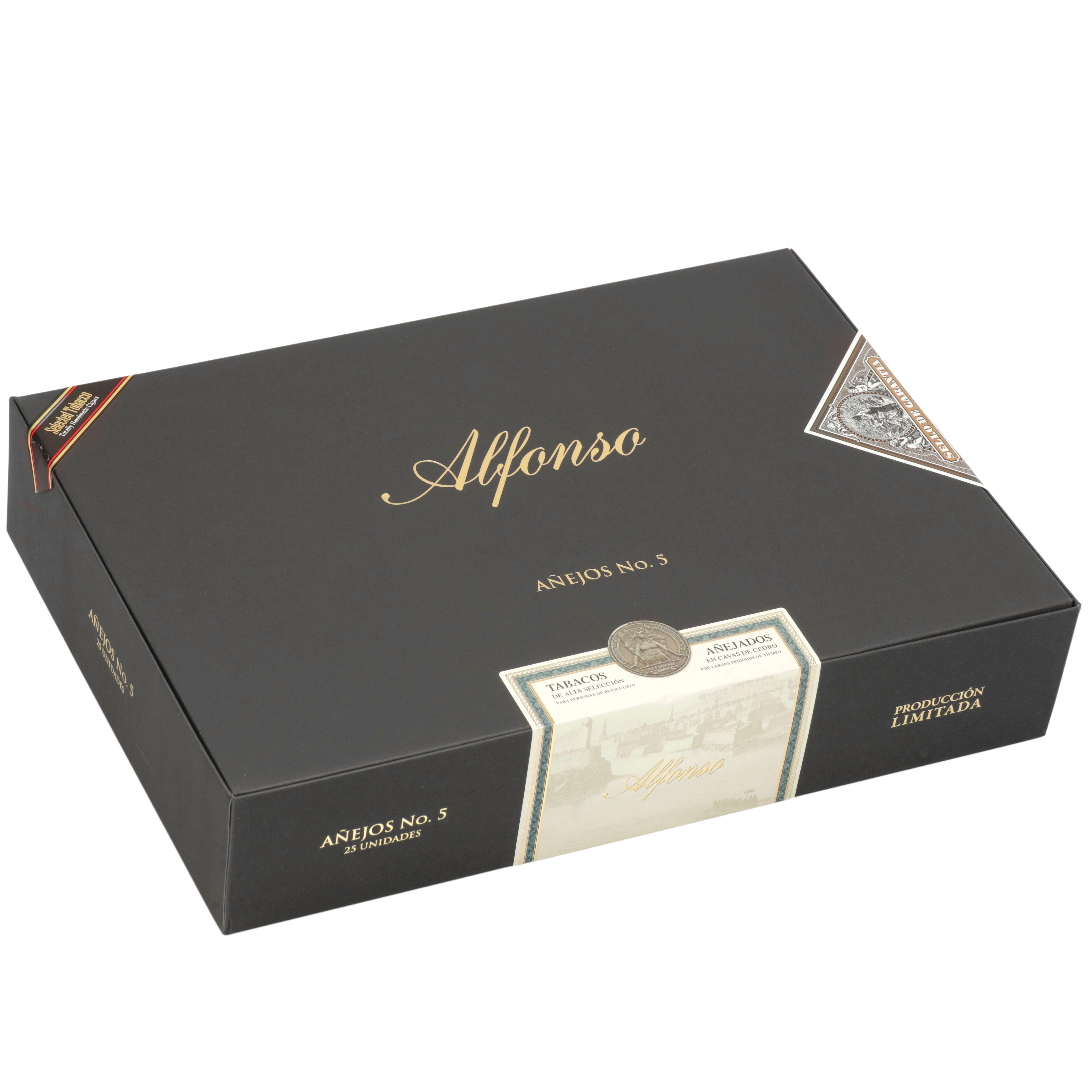 Handmade at the Tabacos de Costa Rica factory, the Alfonso Anejo No. cigars are made in limited batches. An Ecuadorian Connecticut wrapper and binder cover fillers from Nicaragua and Peru and uses cedar and French oak to age the cigars for 5 years.