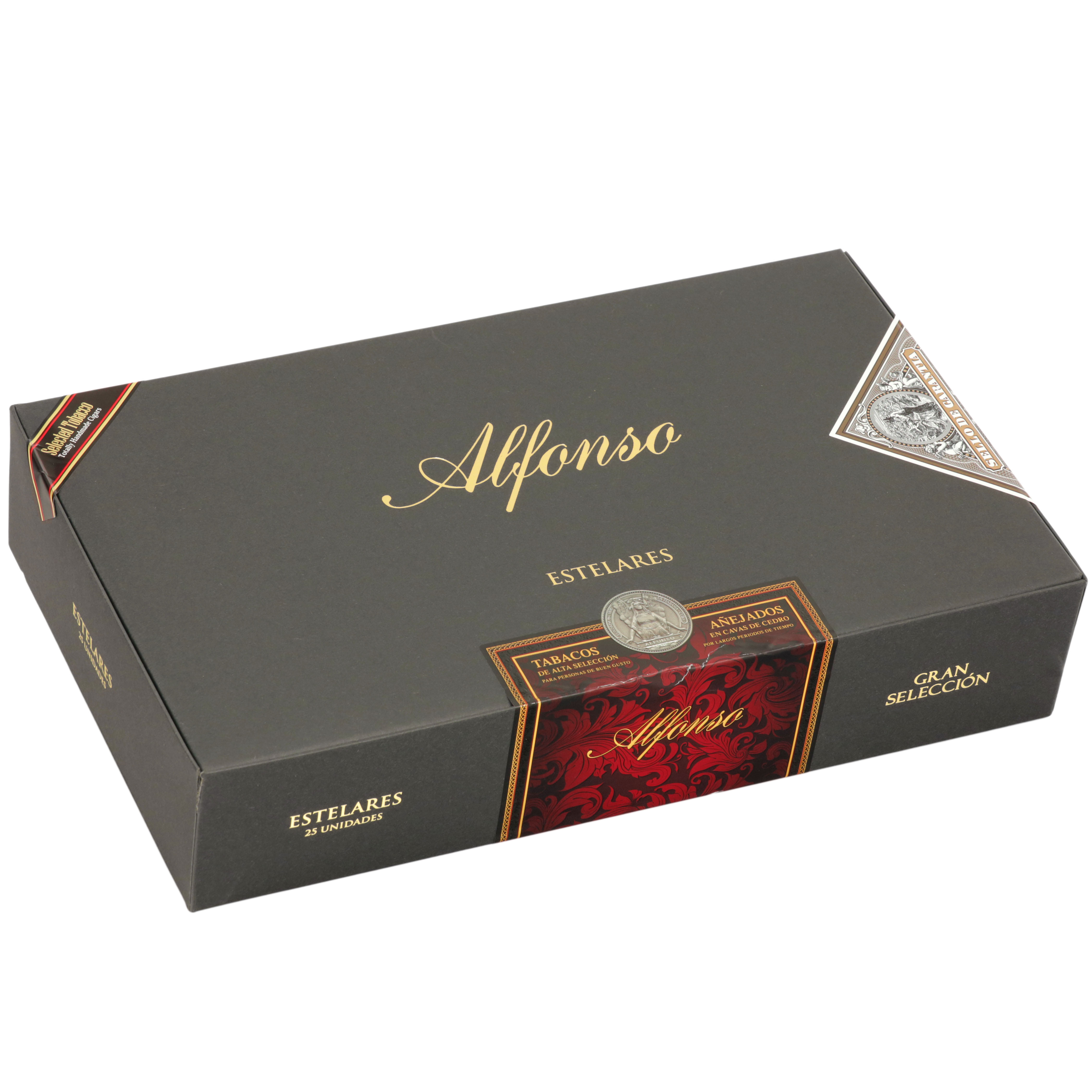 Handmade at Tabacos de Cost Rica,The Alfonso Gran Seleccion Estelares are aged for longer than other companies can claim. These cigars were aged in rooms lines with Spanish cedar. An Ecuadorian Habano wrapper covers a Peruvian binder and fillers from Dominican Republic and Nicaragua.