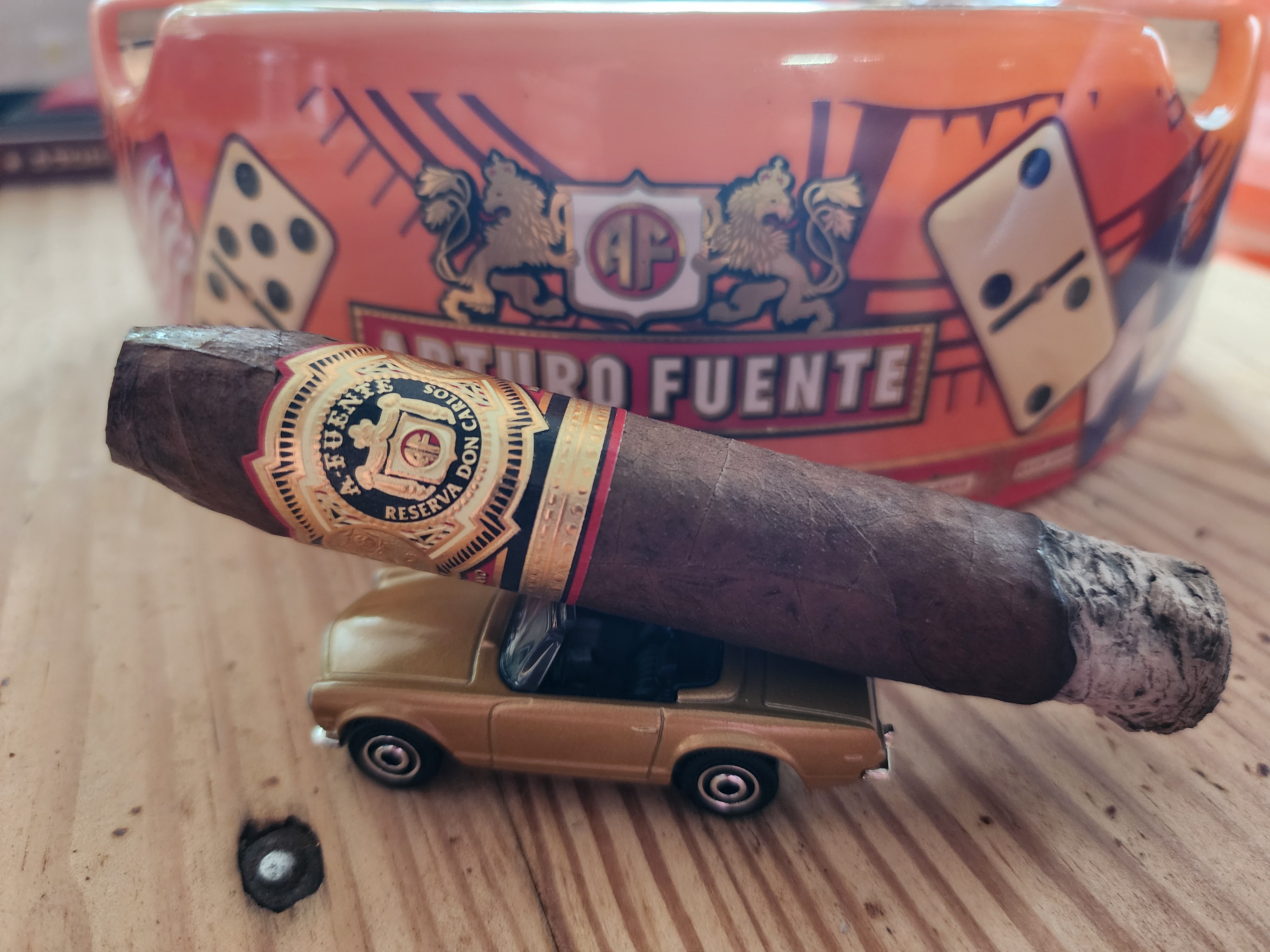 A smooth, flavorful full-strength cigar with delicious notes of vanilla, cream and floral. Its dark, savory African Cameroon wrapper cloaks a Dominican Republic binder and long-filler leaves. The blend is made of hand selected vintage tobaccos that have been aged for at least ten years. This limited release cigar is named after Don Carlos Fuente, Sr., a legendary cigar crafter and the Fuente family patriarch. The Arturo Fuente Don Carlos Belicoso is handmade in the Dominican Republic.