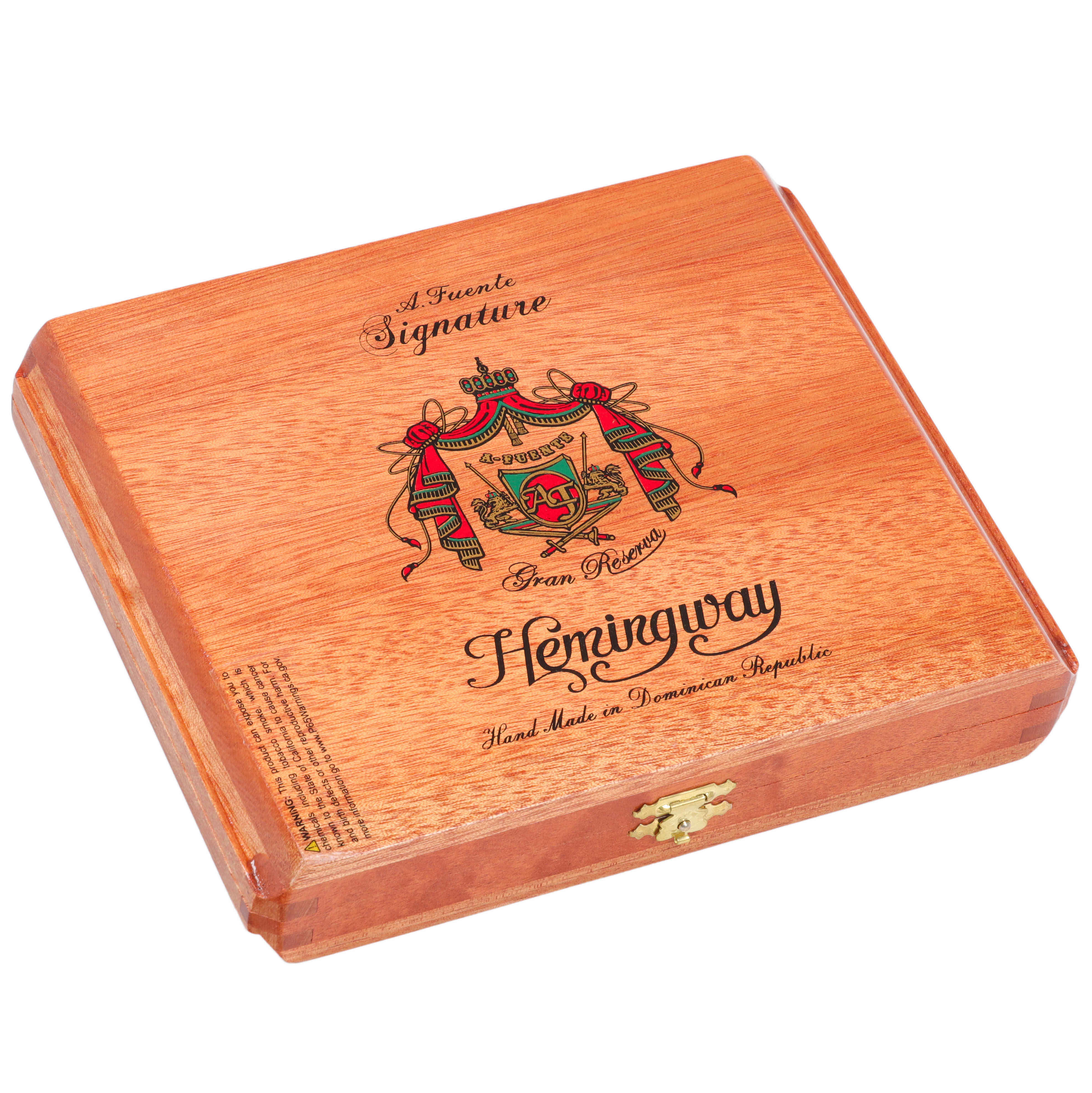 This medium-bodied perfecto offers rich notes of citrus, cedar, coffee and sweetness and an alluring aroma. Its smooth African Cameroon wrapper that is draped over a Dominican binder and filler. The Arturo Fuente Hemingway Signature Natural is handmade in the Dominican Republic.