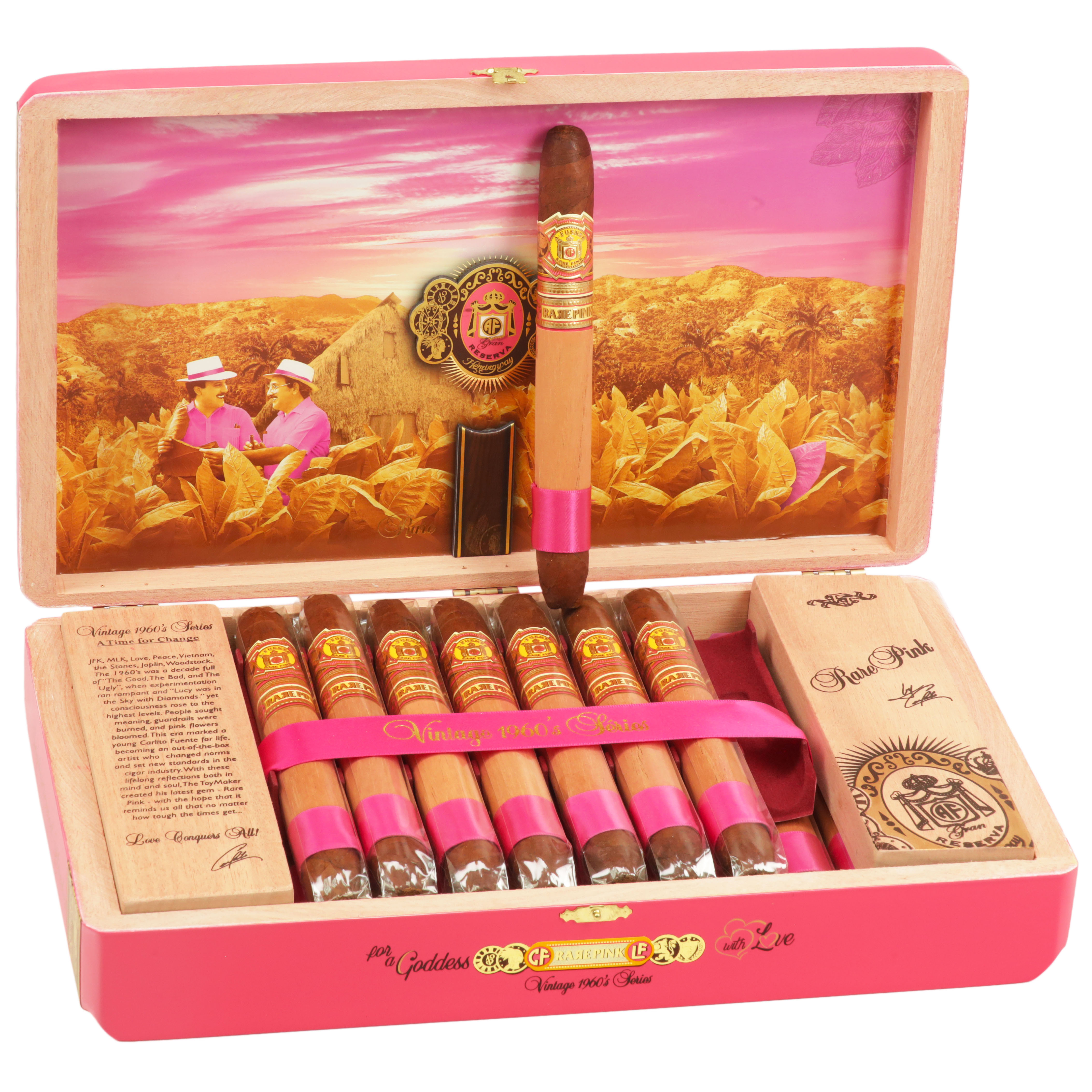 This beautifully crafted perfecto offers notes of spice, oak, cocoa, coffee, and cream. Its lovely Ecuadorian Colorado wrapper cloaks a Nicaraguan binder and a Dominican and Nicaraguan filler. The Rare Pink line offers an enjoyable smoking indulgence while helping raise awareness for breast cancer. Proceeds from the purchase of each box will be donated to The American Cancer Society—Making Strides Against Breast Cancer. The cigars are handmade in the Dominican Republic.