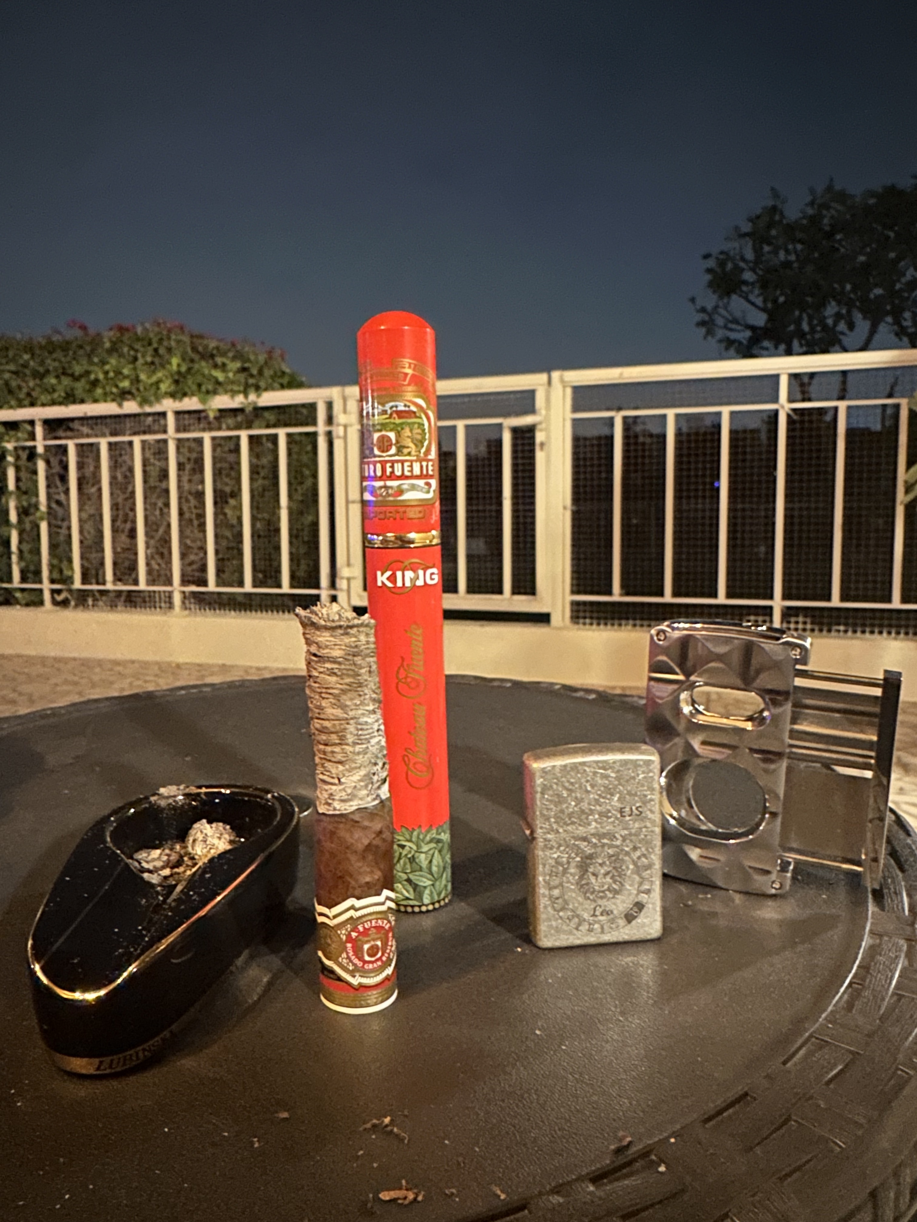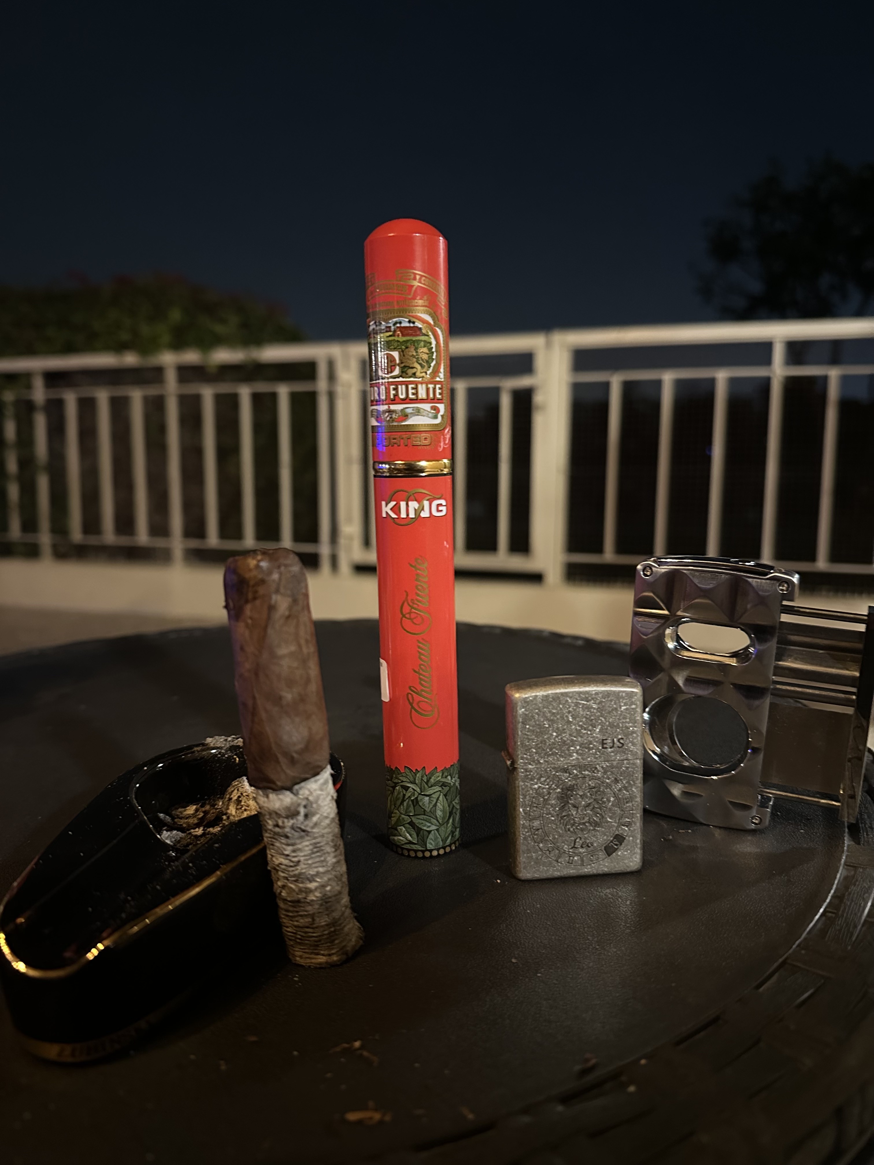 This superbly crafted medium bodied smoke has a spicy, peppery and honey profile underscored by an irresistible sweetness. Its reddish sun-grown wrapper covers a Dominican binder and filler. Each cigar is nested in an aluminum tube to protect its delicate wrapper. The Arturo Fuente Rosado Sun Grown King T is handmade in the Dominican Republic.
