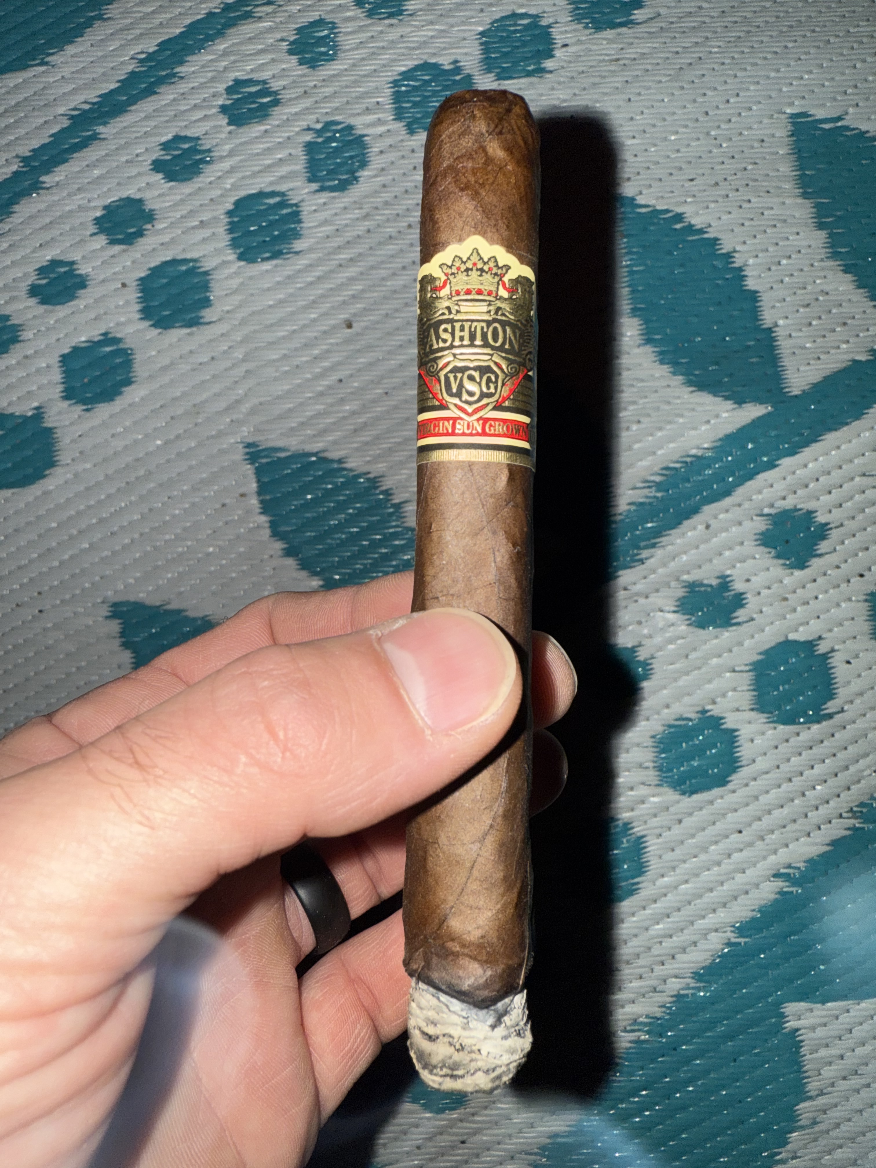 This potent, full-strength cigar offers a rich complexity with notes of cedar, espresso bean, black pepper, earth and leather. Its dark chocolatey Ecuadorian Sumatra-seed wrapper covers a Dominican binder and filler. The Ashton Virgin Sun Grown (VSG) brand was born out of the partnership of two greats in the cigar industry: Robert Levin, an experienced tobacconist, and Carlos Fuente Jr. from the prestigious Tabacalera A. Fuente. Launched in 1985, the Ashton VSG is a consistently high rated cigar that has become a classic for the cigar connoisseur. The Ashton VSG Corona Gorda is handmade in the Dominican Republic.