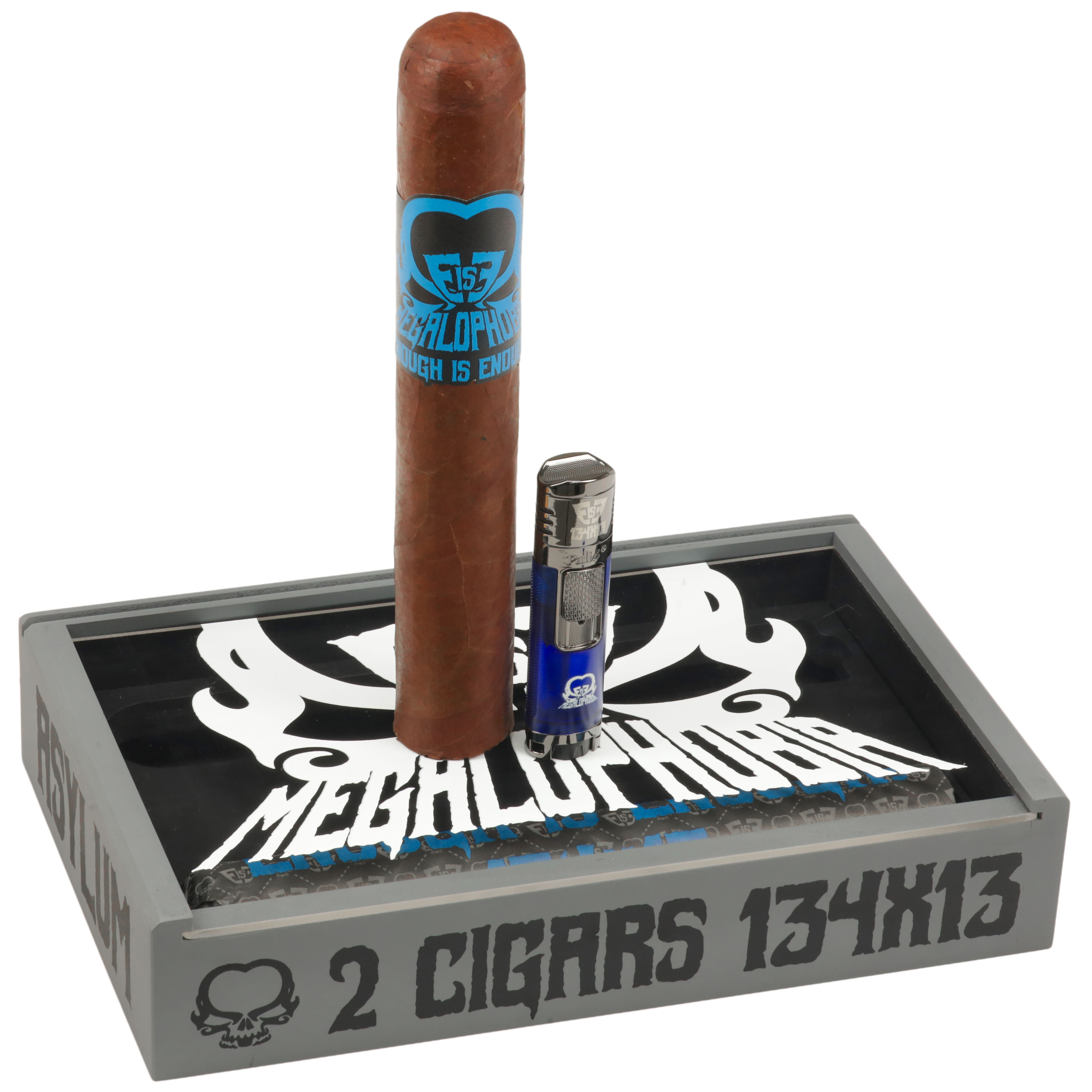 The Asylum 13 Megalophobia isn’t just a cigar, it’s a feat of strength and a testament to cigar-making audacity. Weighing in at a staggering 1.6 pounds, roughly the equivalent of 15 robustos, this limited-edition titan is built for those who don’t just smoke cigars, they conquer them. Massive in both stature and presence, the Megalophobia is designed to push the limits of even the most seasoned aficionados. Whether you attempt to smoke it or simply display it as the centerpiece of your humidor, if your humidor is large enough, this cigar is a powerful symbol of endurance, excess, and the bold identity of the Asylum brand. It's not for the faint of heart—this is cigar-smoking at its most extreme