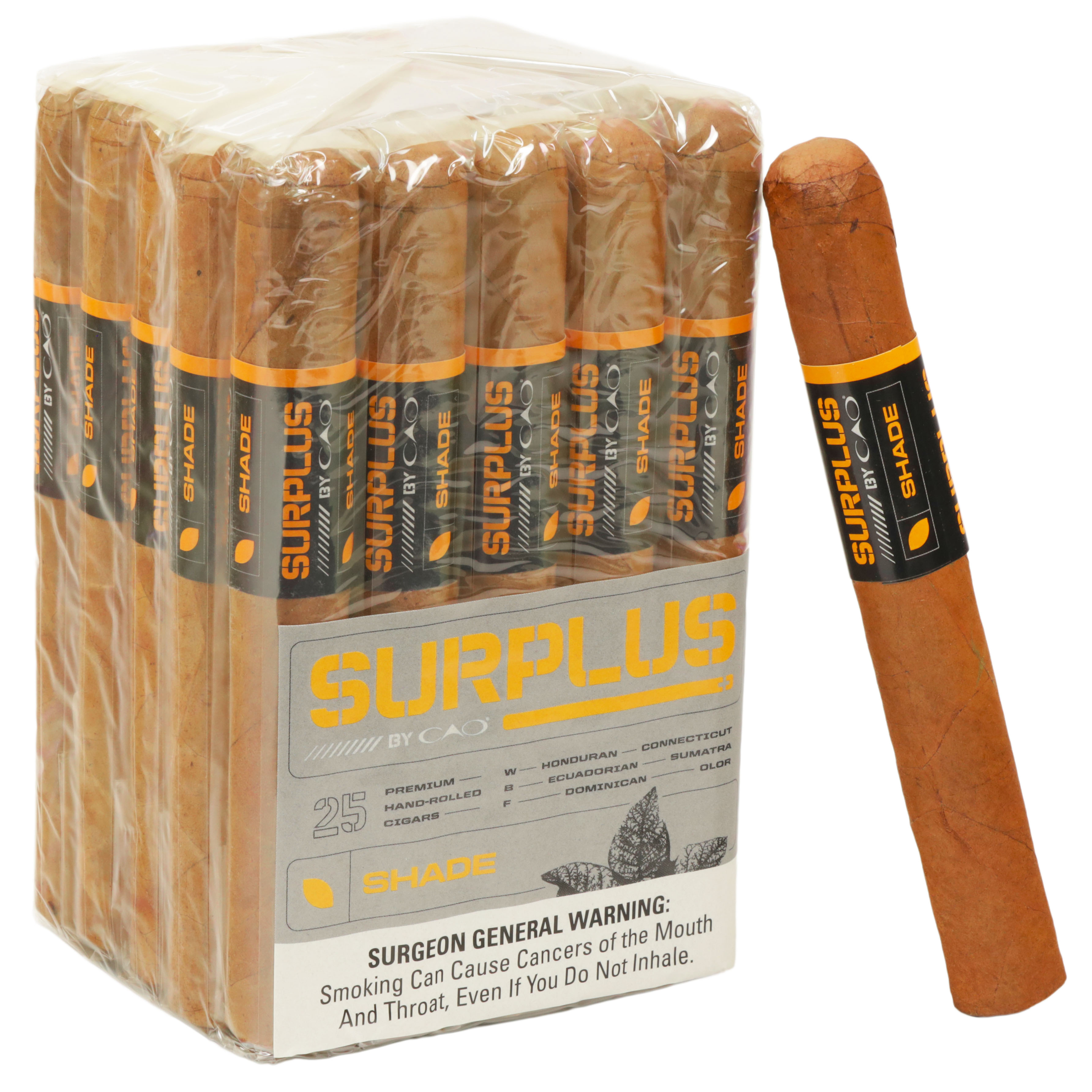 The CAO Surplus Shade bundle is a handmade cigar produced at STG Danlí with a focus on straightforward, reliable quality. It uses a Honduran Connecticut wrapper over an Ecuador Sumatra binder and Dominican Olor filler, a traditional combination chosen for balance and approachability. Designed as an affordable bundle, it highlights how classic long-filler construction can be delivered in a simple, no-frills format. It is also available in Maduro and Sweet versions, giving smokers additional options for a punchier profile or a touch of added flavor.