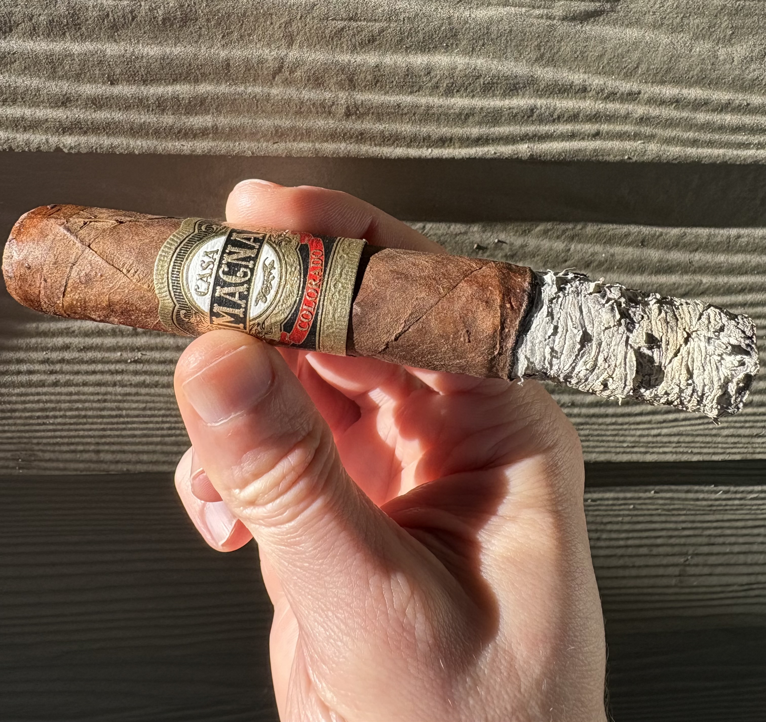 This potent stick has a rich complexity with pleasing notes of cedar, coffee, cinnamon and a toasty finish. It is a Nicaraguan puro with a reddish maduro wrapper. Handmade in Nicaragua at the Plasencia Cigars factory, the blend for Casa Magna Colorado Robusto was created by renowned master blenders Manuel Quesada and Nestor Plasencia.
