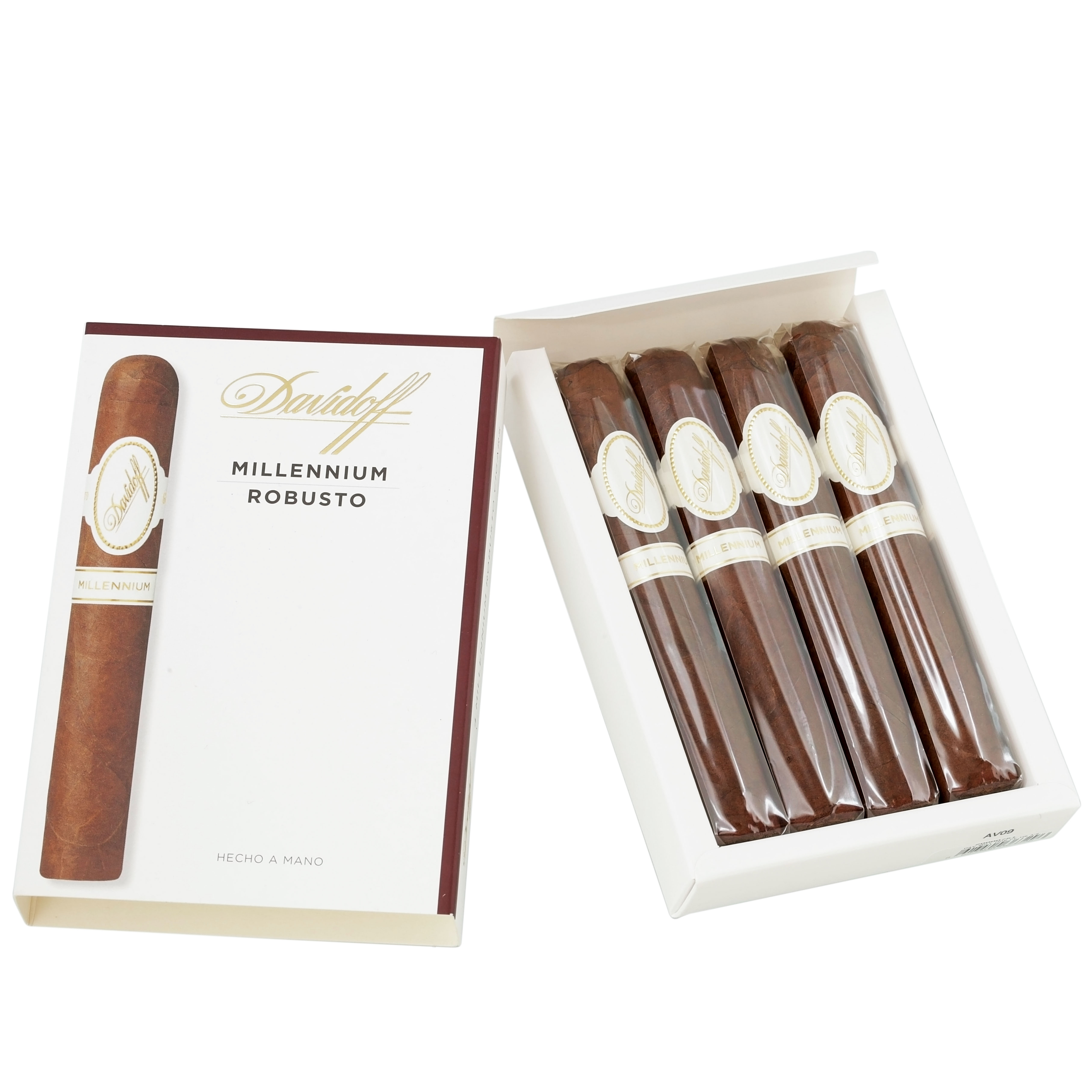 A smooth, bold smoke with notes of cedar, earth, and spice. Its silky, reddish Ecuadorian Sungrown wrapper drapes a Dominican binder and filler. Handmade in the Dominican Republic, the Davidoff Millennium Robusto offers a medium to full-bodied smoking experience that will appeal to novice as well as veteran aficionados.