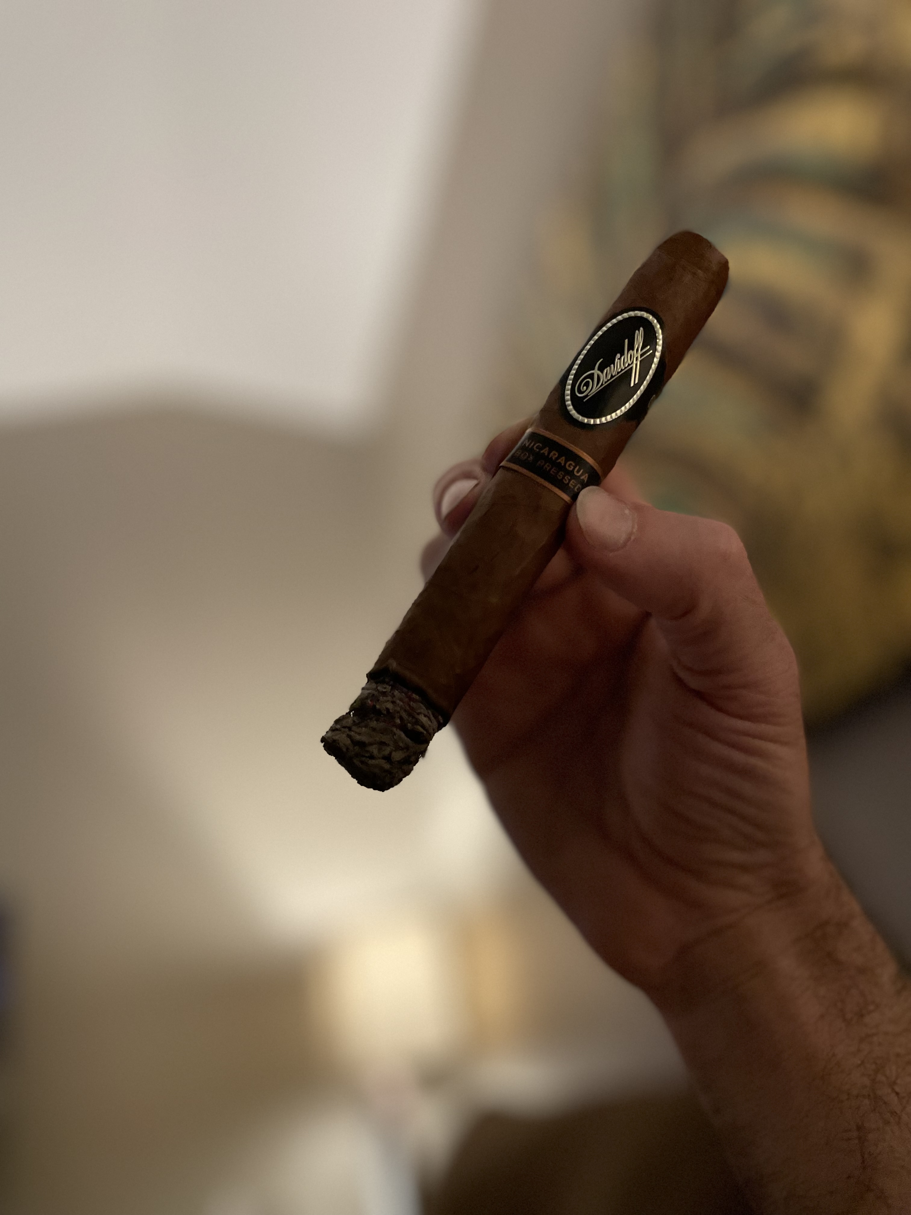 A full-bodied, cigar with complex notes of cocoa, coffee, leather and earth. Its flawless Nicaraguan Habano wrapper covers a Jalapa binder and a top-shelf Nicaraguan filler. Handmade in the Dominican Republic, the Davidoff Nicaragua Box Pressed Toro offers a rich creamy smoking experience.