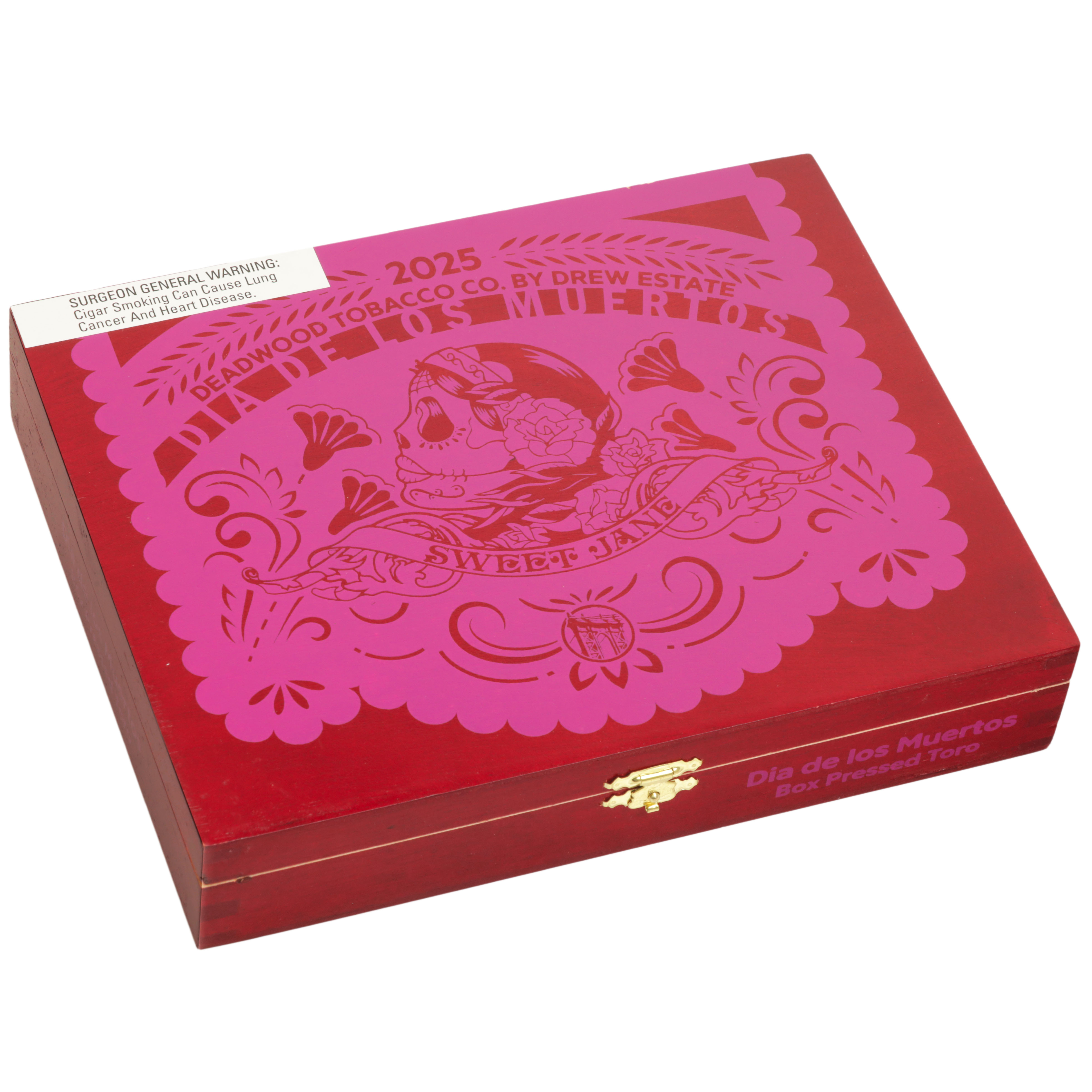 Deadwood's Sweet Jane Día de los Muertos 2025, an annual celebration since 2019, is a flavored fan favorite with a USA Connecticut Broadleaf wrapper over Nicaraguan binder and fillers. Unchanged from last year’s edition, because why change what everyone loves? Described by Drew Estate as "sweet, seductive, and sensual", this stick is requested year around. It's festive Día de los Muertos artwork brings the Deadwood attitude to life in vivid color.