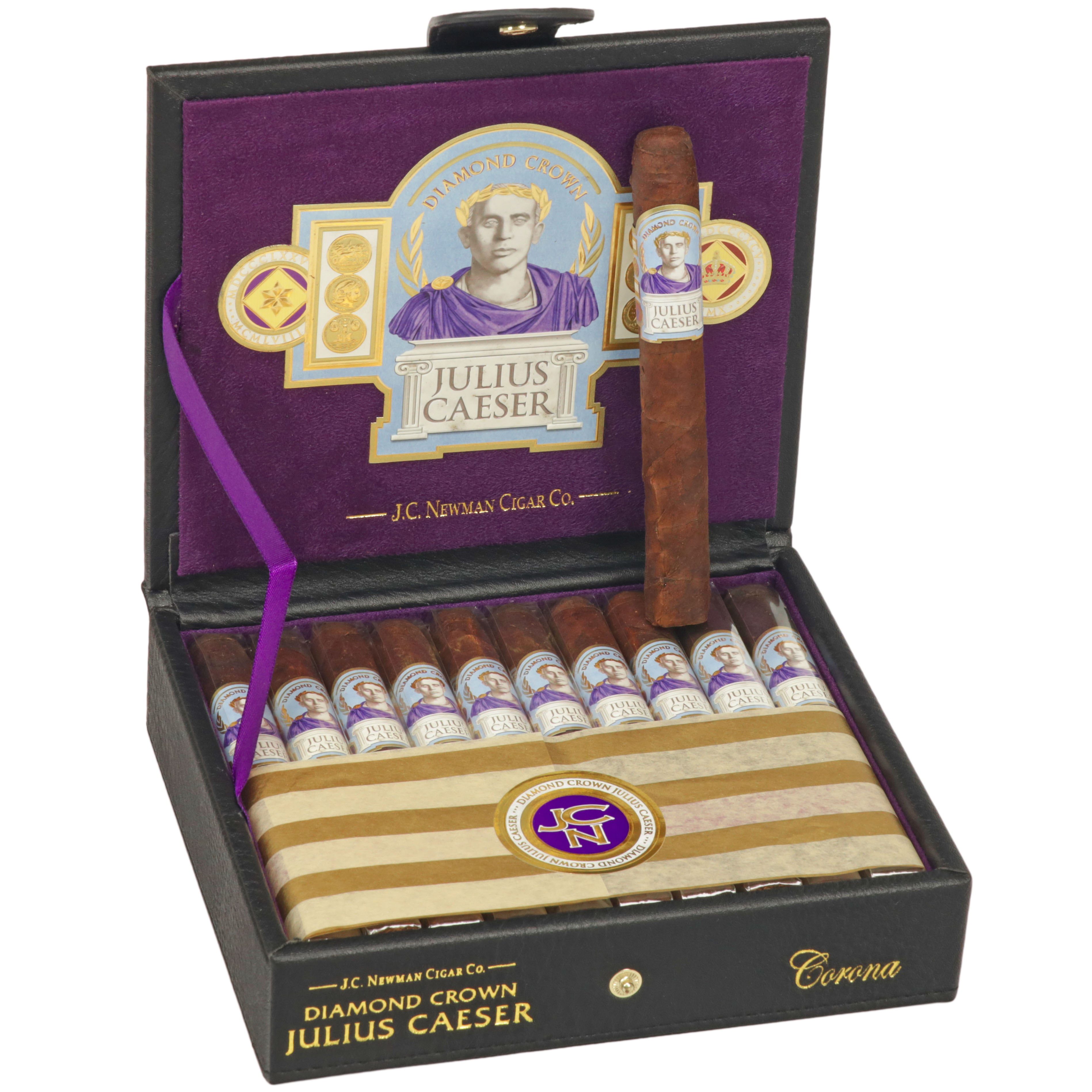 Creamy cedar, leather, espresso, and earthy notes with a touch of raisin sweetness highlight J.C. Newman's Diamond Crown Julius Caeser. Handcrafted at Tabacalera A. Fuente, it features a silky Ecuador Havana-seed wrapper over five-year-aged fillers, delivering flawless construction, abundant smoke, and a refined medium-bodied profile that honors J.C. Newman’s legacy.