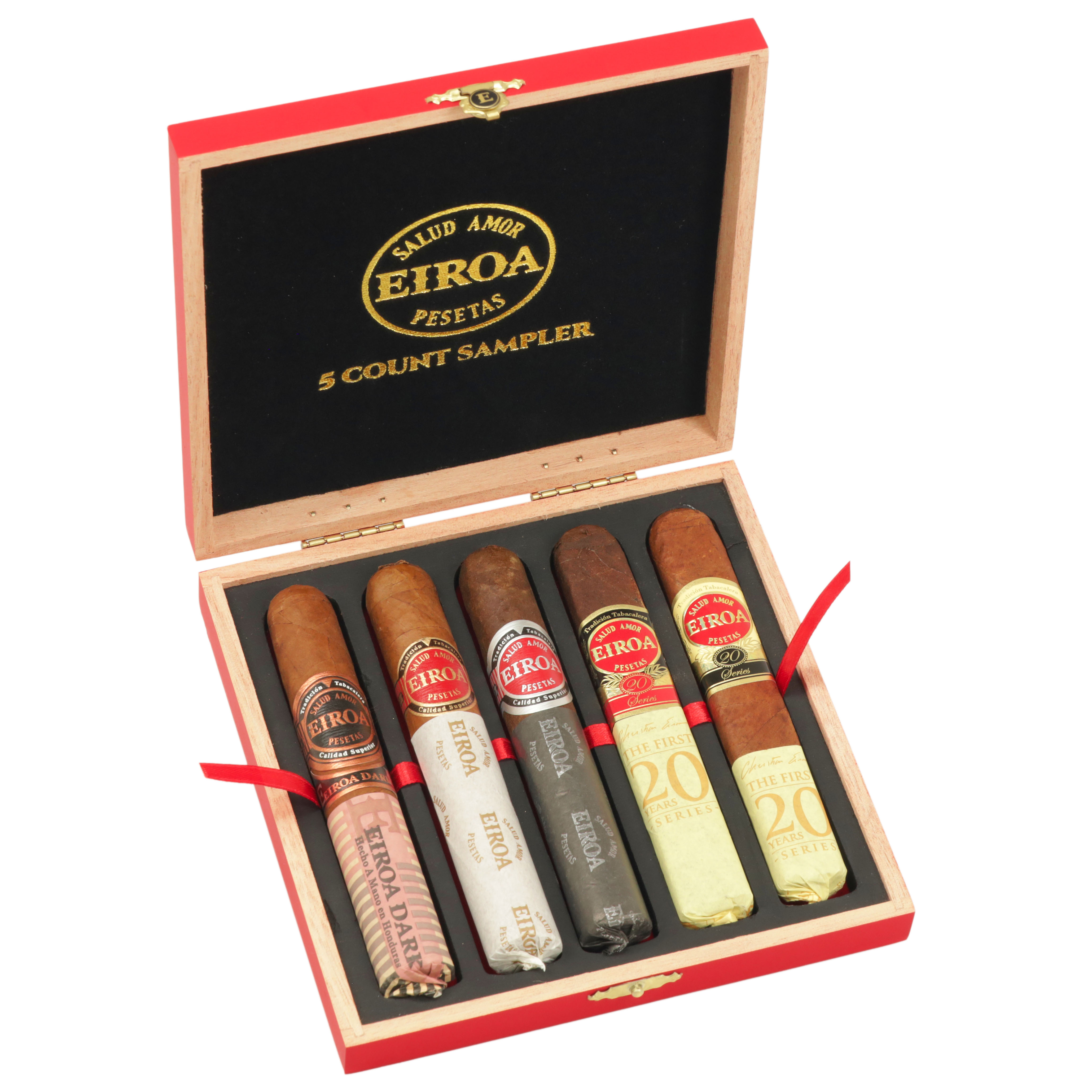The EIROA Cigar by Christian Eiroa has a band that says "Salud, Amor y Pesetas", which is an old Spanish saying that means "Health, Love, and Wealth". The band represents Eiroa's homage to his heritage that started with his grandfather and spans 100 years of love for making cigars. The EIROA cigar is made in Danli, Honduras at the Aladino Factory and uses Honduran tobacco for a bold, full bodied flavor.