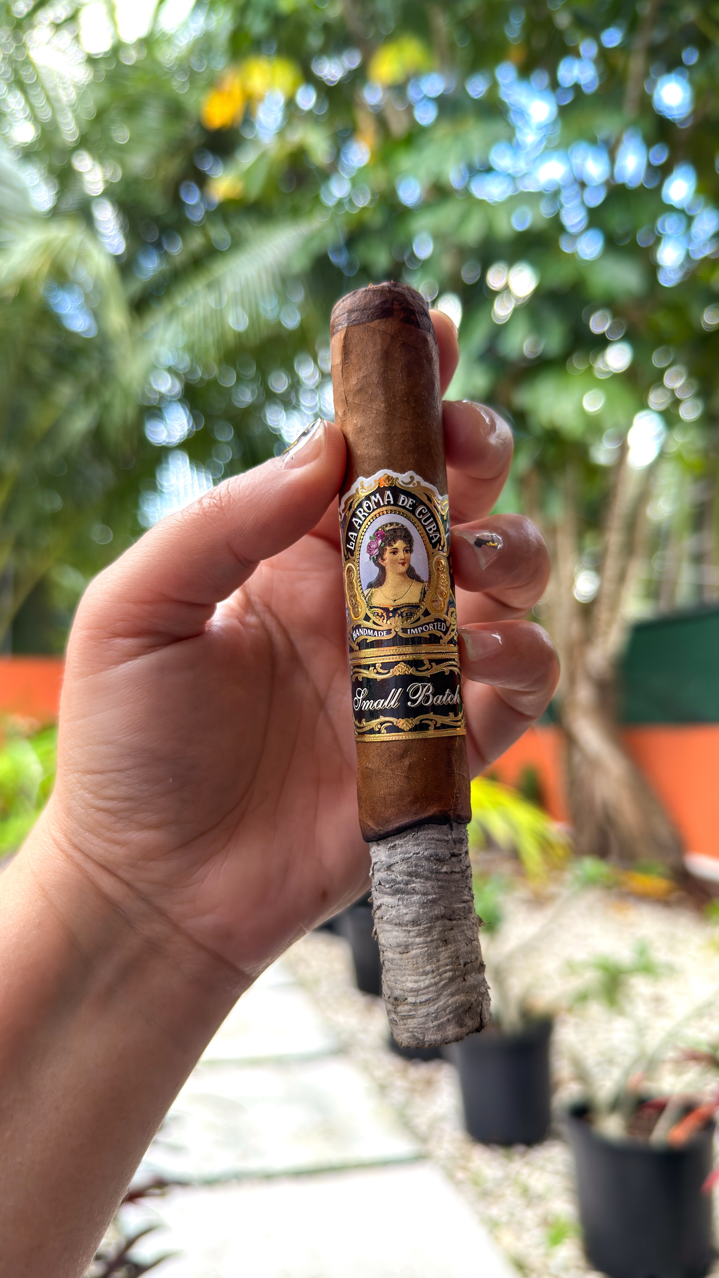The rarest cigar in the La Aroma de Cuba portfolio, Small Batch features an oily Ecuador Habano wrapper over a proprietary blend of five-year-aged long fillers from Estelí, Jalapa, Condega, and Namanji. These fillers are triple fermented to ensure a smooth finish with tons of flavor. La Aroma describes the profile as espresso bean, cedar, nutmeg, Medjool date, and crushed black and red pepper, delivering a balance of spice, sweetness, and earthy richness from beginning to end.