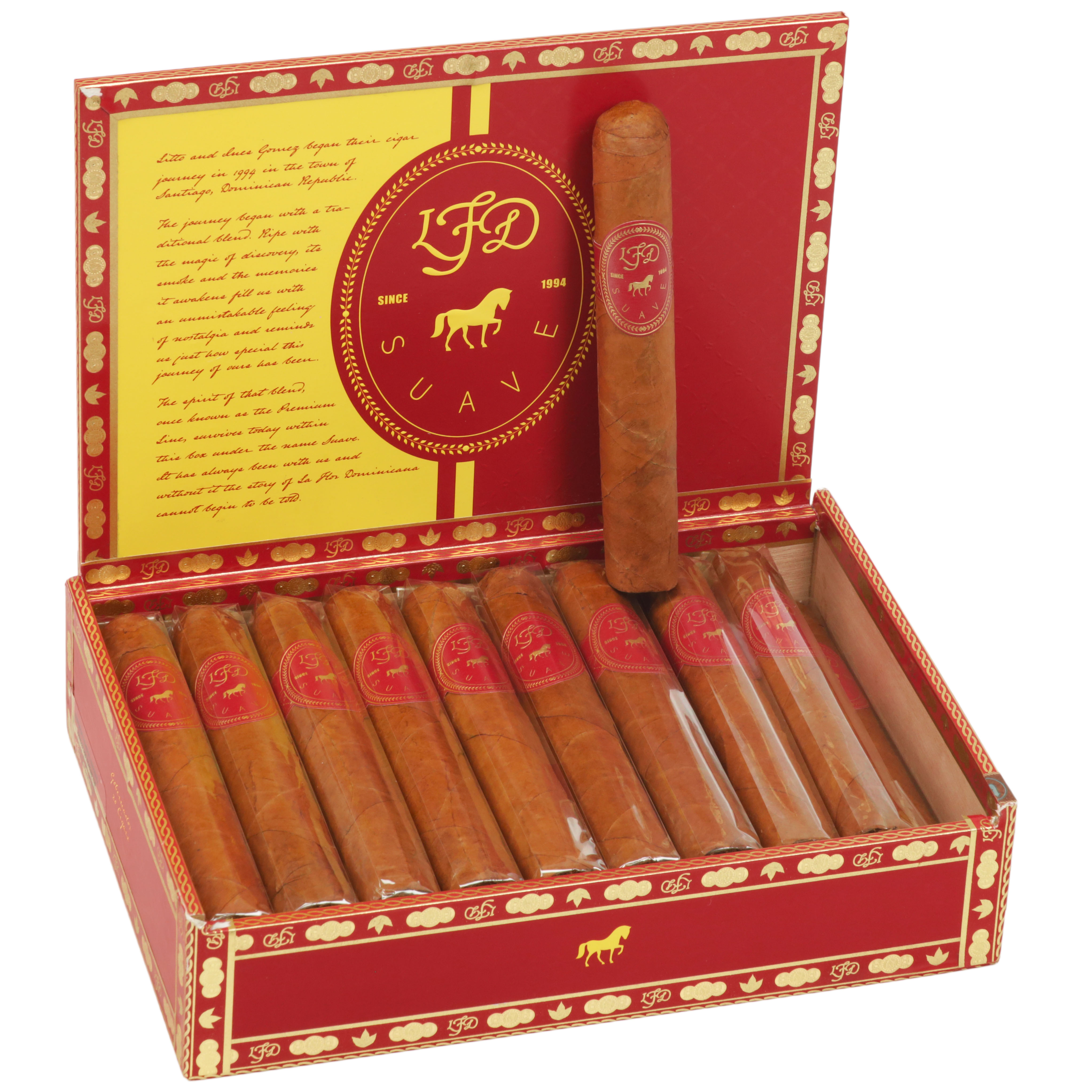 La Flor Dominicana Suave is a reimagined classic that honors LFD’s original 1994 blend with three decades of refinement. Cocoa, light spice, natural sweetness, and a creamy finish are featured tasting notes for this stick. Mild to medium-bodied yet full in flavor, Suave now features an Ecuadorian Corojo wrapper, San Andrés binder, and rich Criollo 99 Dominican fillers. A change from the original, Connecticut Shade, Litto Gomez calls it a cigar crafted with the wisdom of experience, what Suave would’ve been if they'd known then what they know now. A time honored stick from a titan in the cigar world, if you like lots of flavor on a mellow cigar this reblend is one to try!