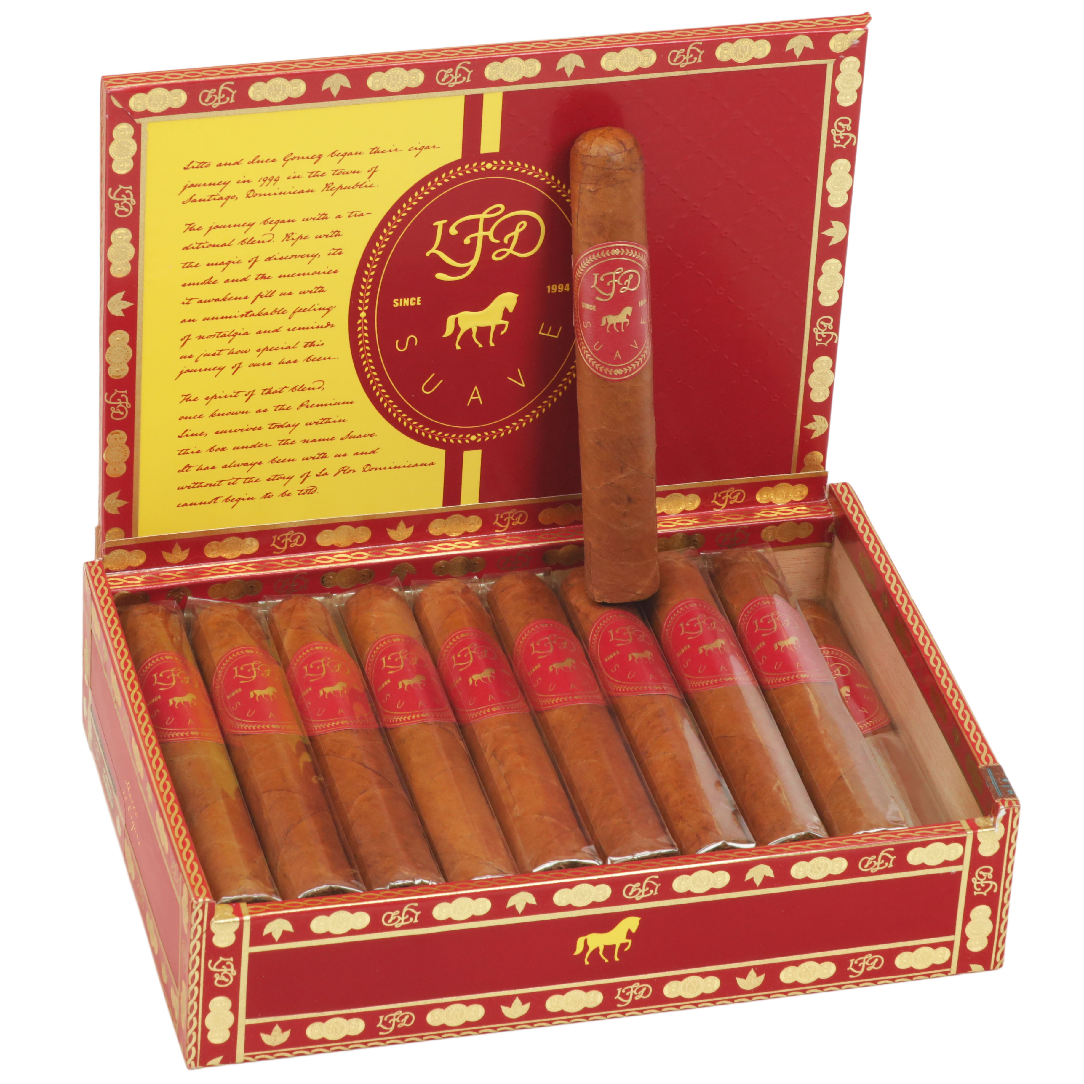 La Flor Dominicana Suave is a reimagined classic that honors LFD’s original 1994 blend with three decades of refinement. Cocoa, light spice, natural sweetness, and a creamy finish are featured tasting notes for this stick. Mild to medium-bodied yet full in flavor, Suave now features an Ecuadorian Corojo wrapper, San Andrés binder, and rich Criollo 99 Dominican fillers. A change from the original, Connecticut Shade, Litto Gomez calls it a cigar crafted with the wisdom of experience, what Suave would’ve been if they'd known then what they know now. A time honored stick from a titan in the cigar world, if you like lots of flavor on a mellow cigar this reblend is one to try!