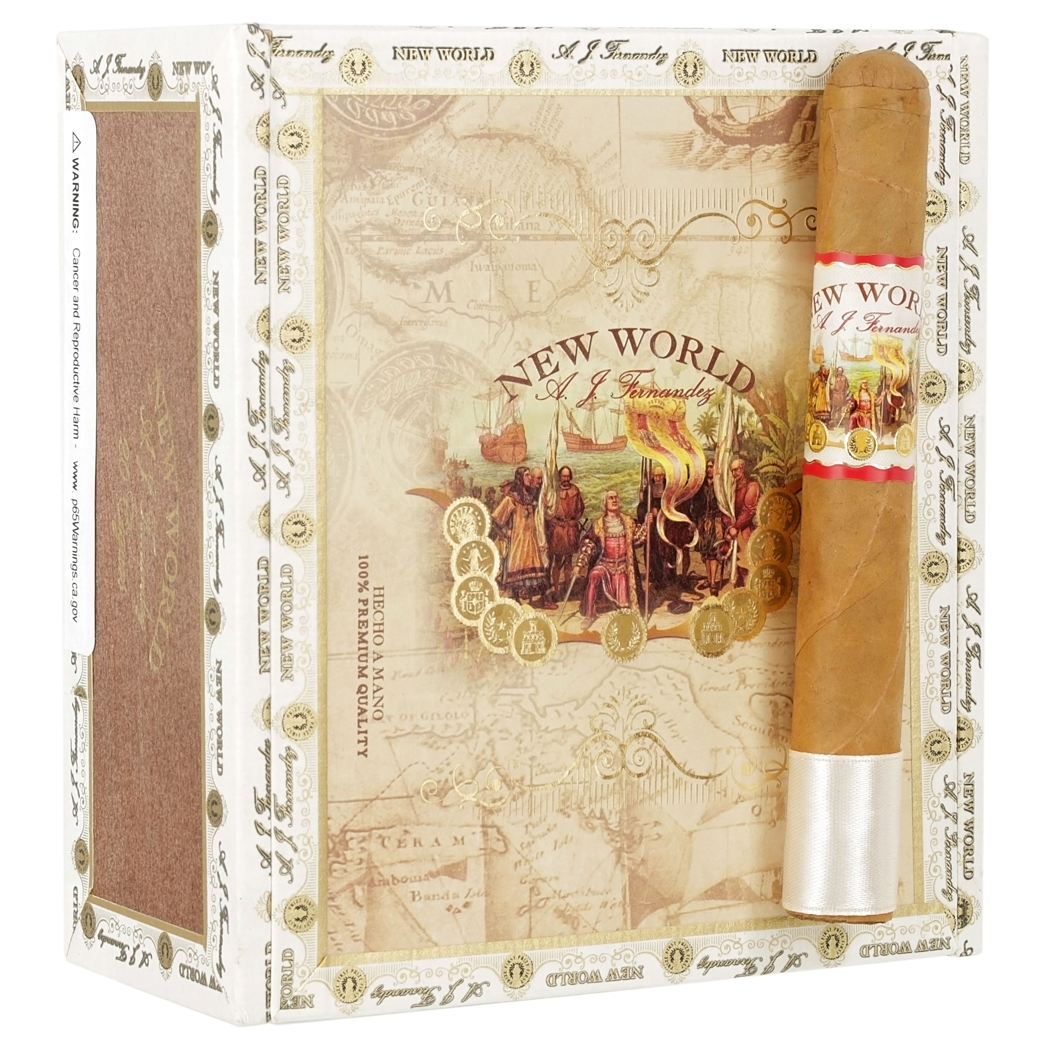 With its warm notes of coffee, cream and cedar, this medium-bodied cigar is perfect any time of day. Its smooth USA Connecticut Shade wrapper covers a Mexican San Andres binder and a Nicaraguan filler. It is the second release of the New World brand, which was created by AJ Fernandez. The New World Connecticut Corona Gorda is handmade in Nicaragua.