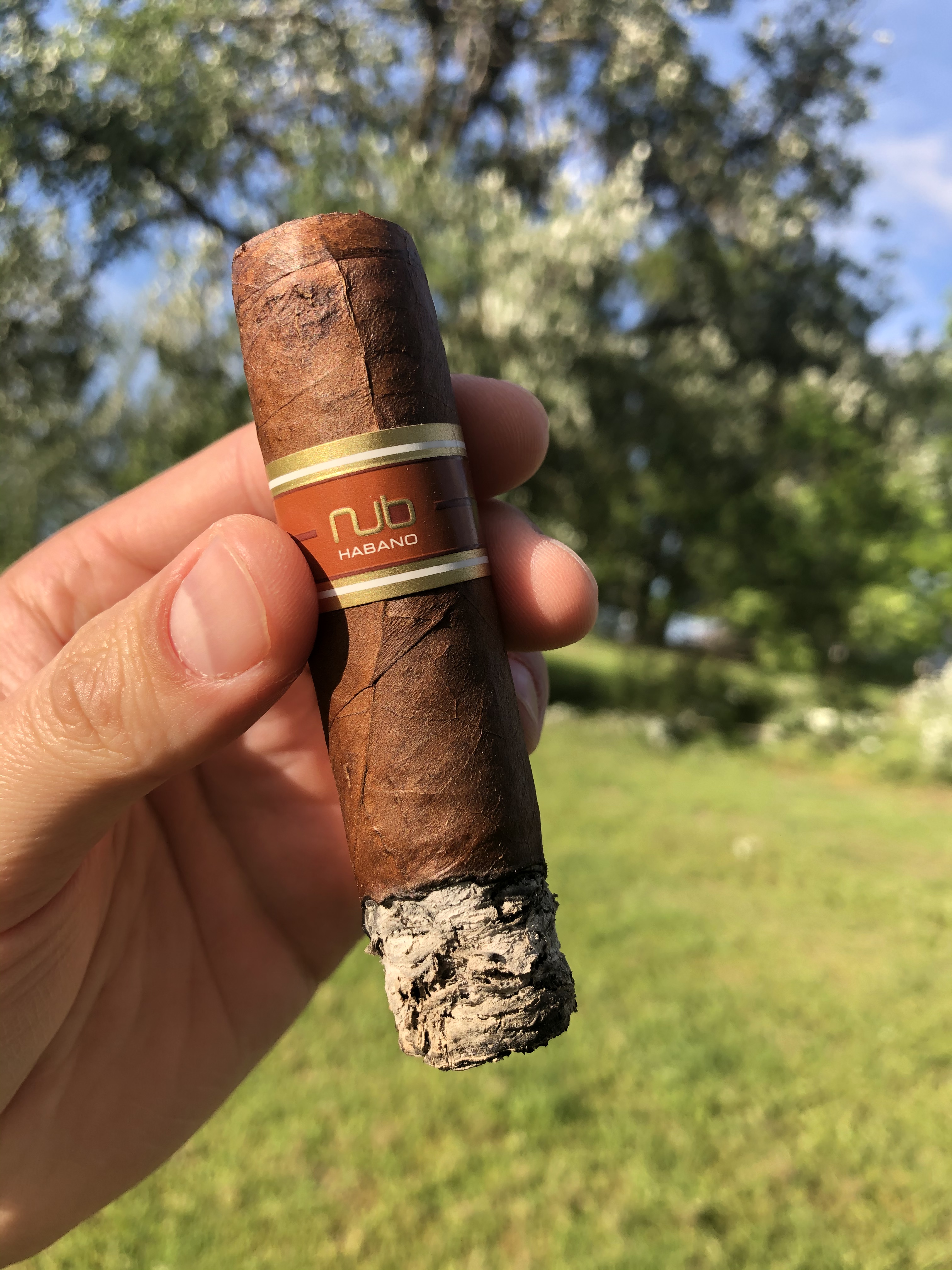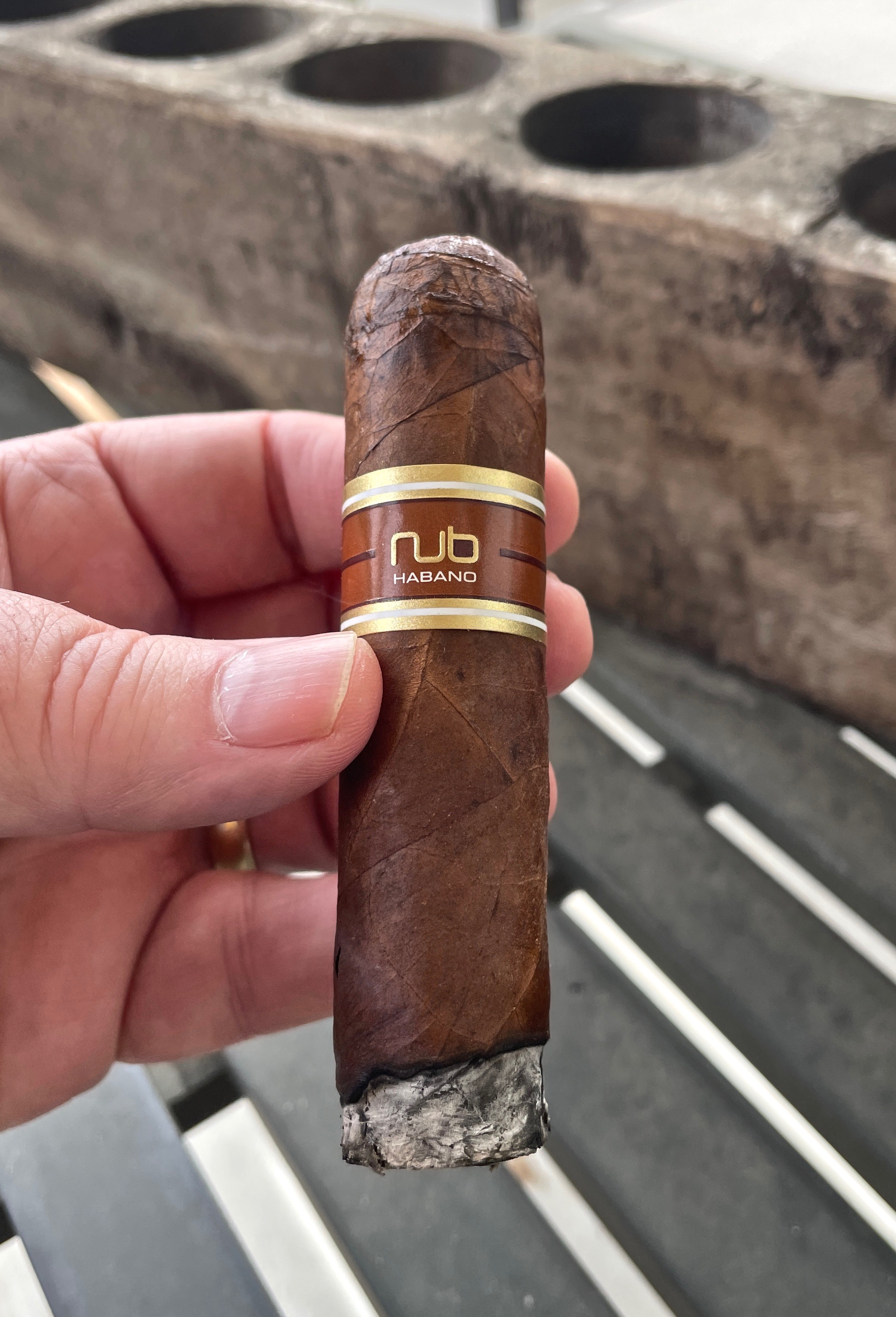 A full-bodied smoke with a woody, spicy and sweet profile, and a nutty finish. Its Habano Colorado maduro wrapper sheaths a Nicaraguan binder and filler. The NUb Habano is handmade in Nicaragua. The crafters of the NUb line realized that at 4 inches in length and between 58 and 66 rings, the "Nub" delivered almost instantaneous flavor upon ignition yet smoked for a similar duration (average 1 hour) as other cigars that, at least visually, appear almost double the size.