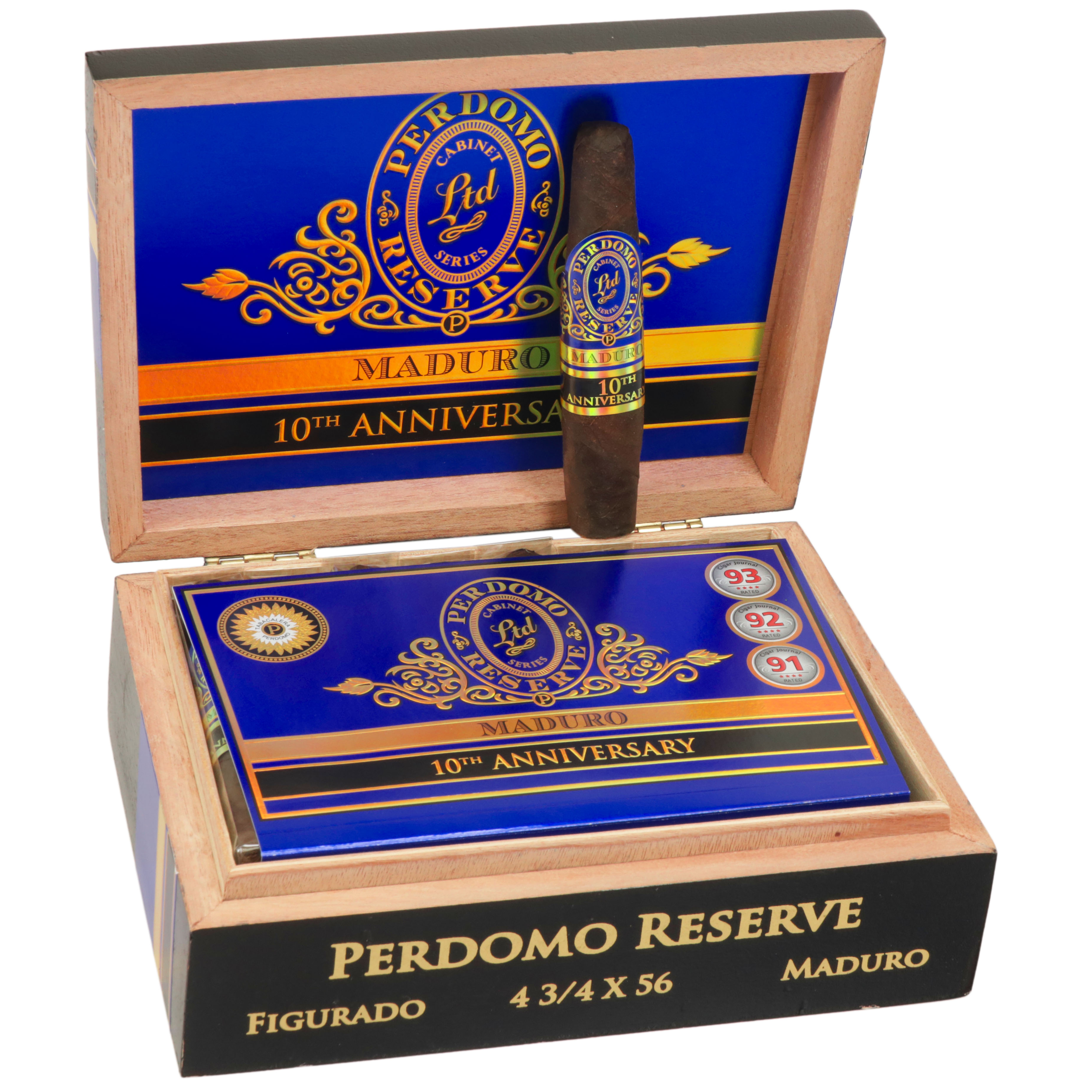 The Perdomo Reserve 10th Anniversary Maduro was created to mark this popular premium cigar’s decade of satisfying the palates of cigar enthusiasts. It is a medium to full-bodied cigar that is hand crafted at the Tabacalera Perdomo factory in Esteli, Nicaragua. Its oily Cuban-seed Nicaraguan maduro wrapper has been carefully aged for 6 years and allowed to mellow in a bourbon barrel for an additional 10 months. The wrapper is then expertly placed over a Cuban-seed Nicaraguan binder and filler, which has been aged for 6 years. Perdomo cigars are highly regarded for their consistency and taste.