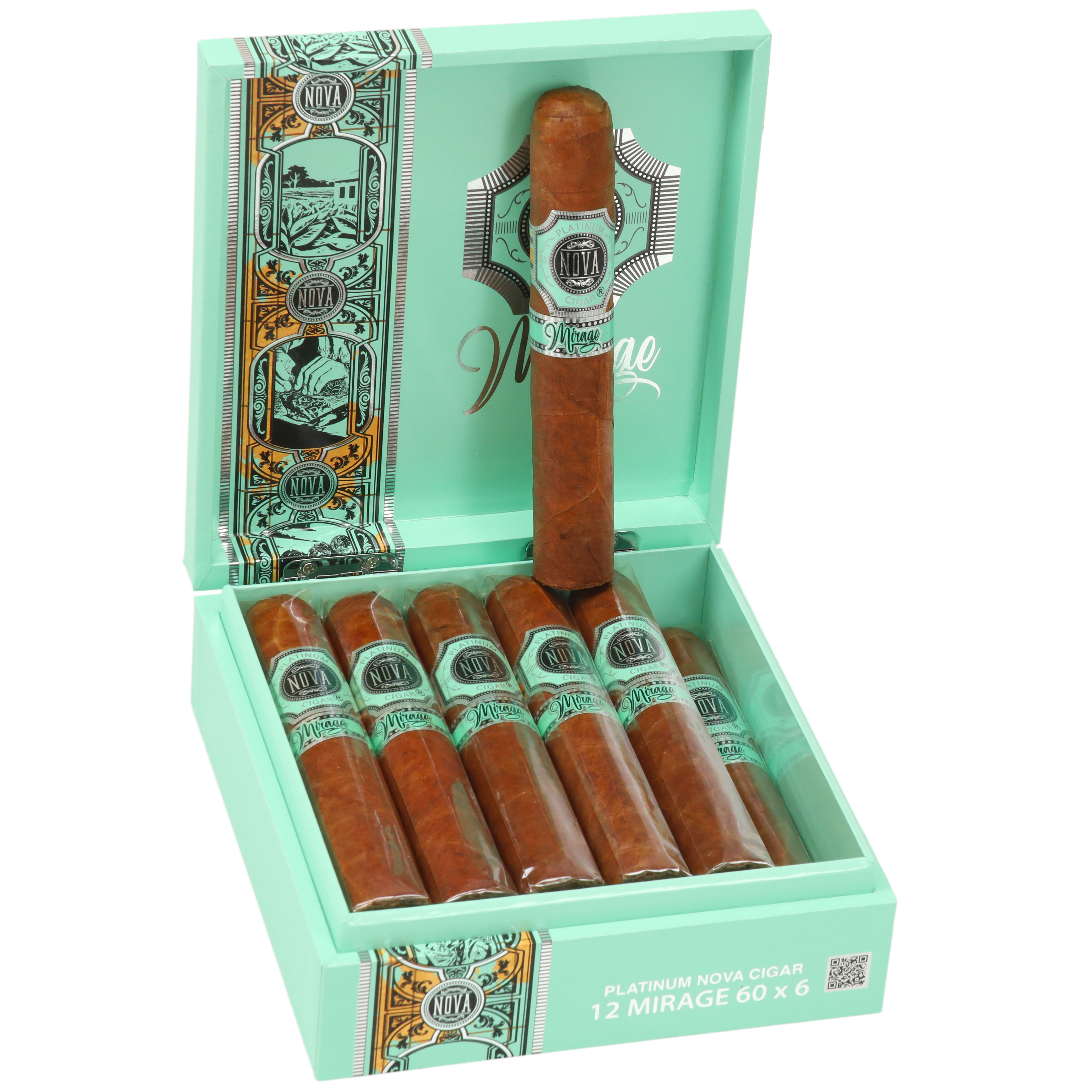 This medium to full-bodied smoke offers notes of leather, white pepper, and dark chocolate underscored by a deep earthiness. Its Ecuadorian Sumatra wrapper drapes a Dominican Piloto binder and Dominican filler. The Platinum Nova Mirage is a thick cigar that will give you a long, pleasurable smoking indulgence. The cigars are handmade in the Dominican Republic.