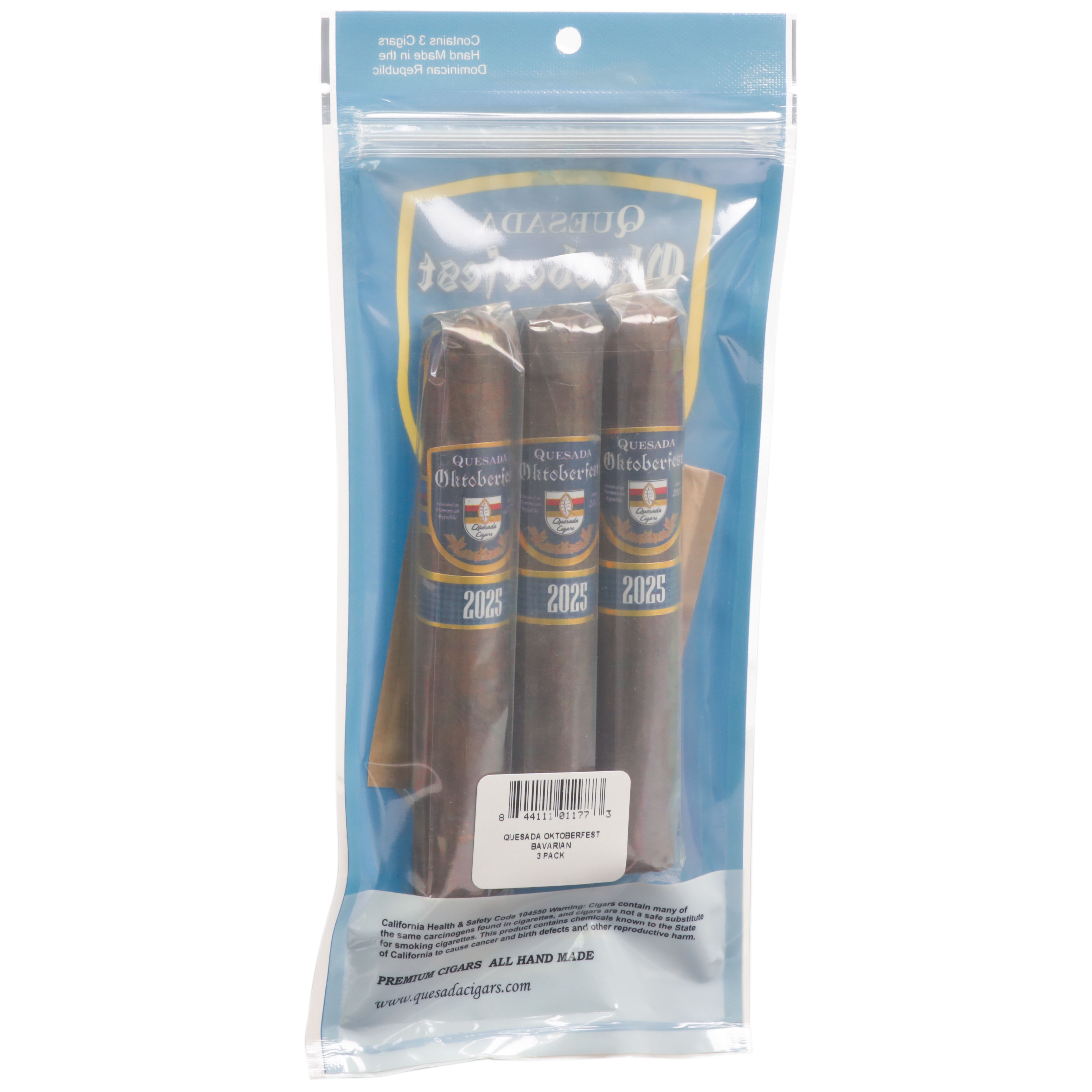 The Quesada Oktoberfest Bavarian was ranked 88 by Cigar Aficionado. This cigar is dark and strong; and was created as a celebratory nod to the famous German beer festival. This blend is meant to be paired with the Marzen-style beer produced for Oktoberfest. This Quesada sampler includes 3 cigars, Quesada Oktoberfest Bavarian 5"1/2 * 52. The cigars are packed in a sealed humidified pouch in order to insure freshness.