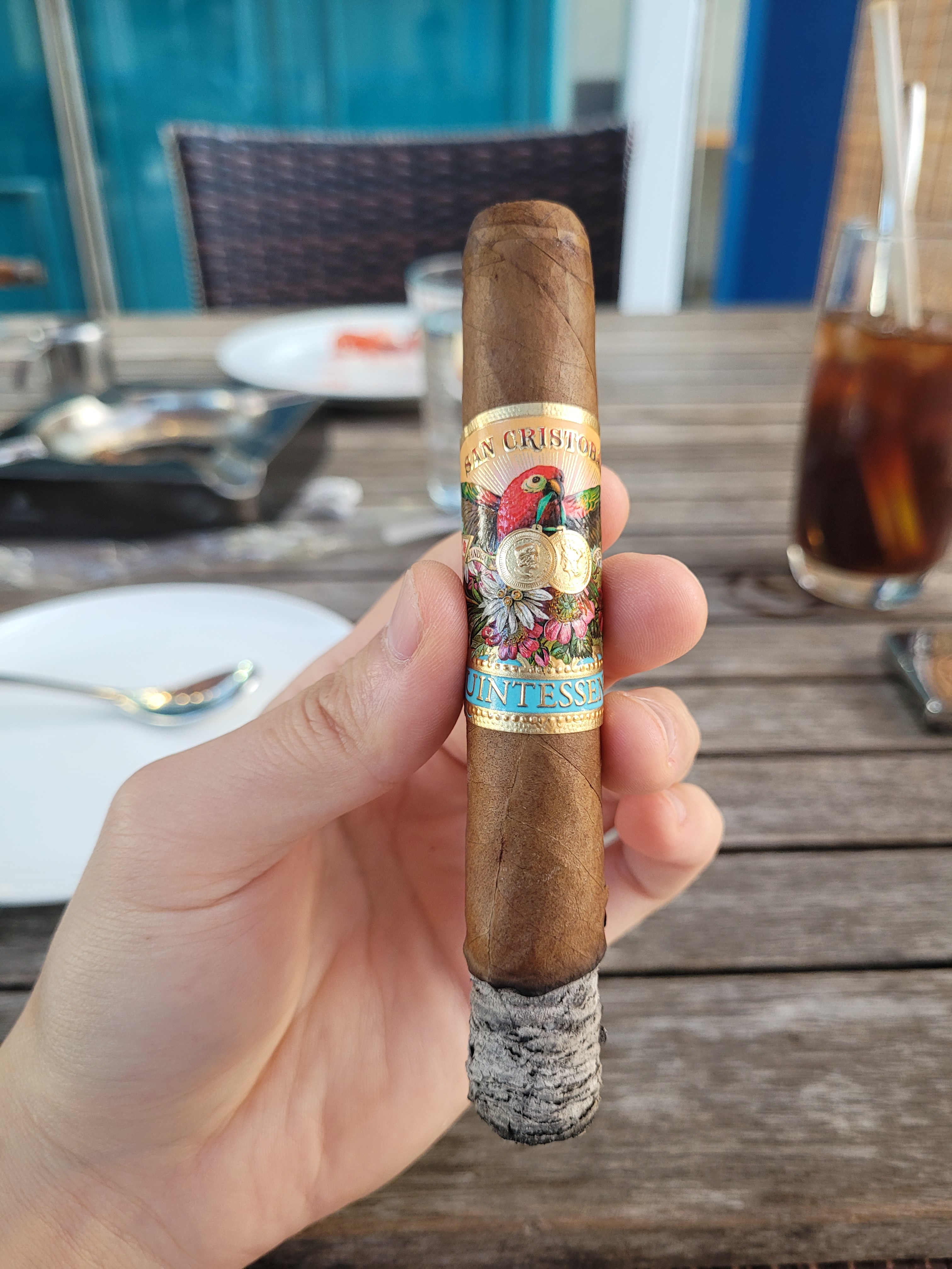 A medium to full-bodied cigar that offers notes of spice, molasses, coffee, and dried fruit. Its Ecuadorian Habano wrapper covers a Nicaraguan binder and filler. Handmade in Nicaragua by My Father Cigars. The San Cristobal Quintessence with its great construction, enjoyable flavor, and agreeable price makes it an ideal after dinner smoke or any other time for that matter.