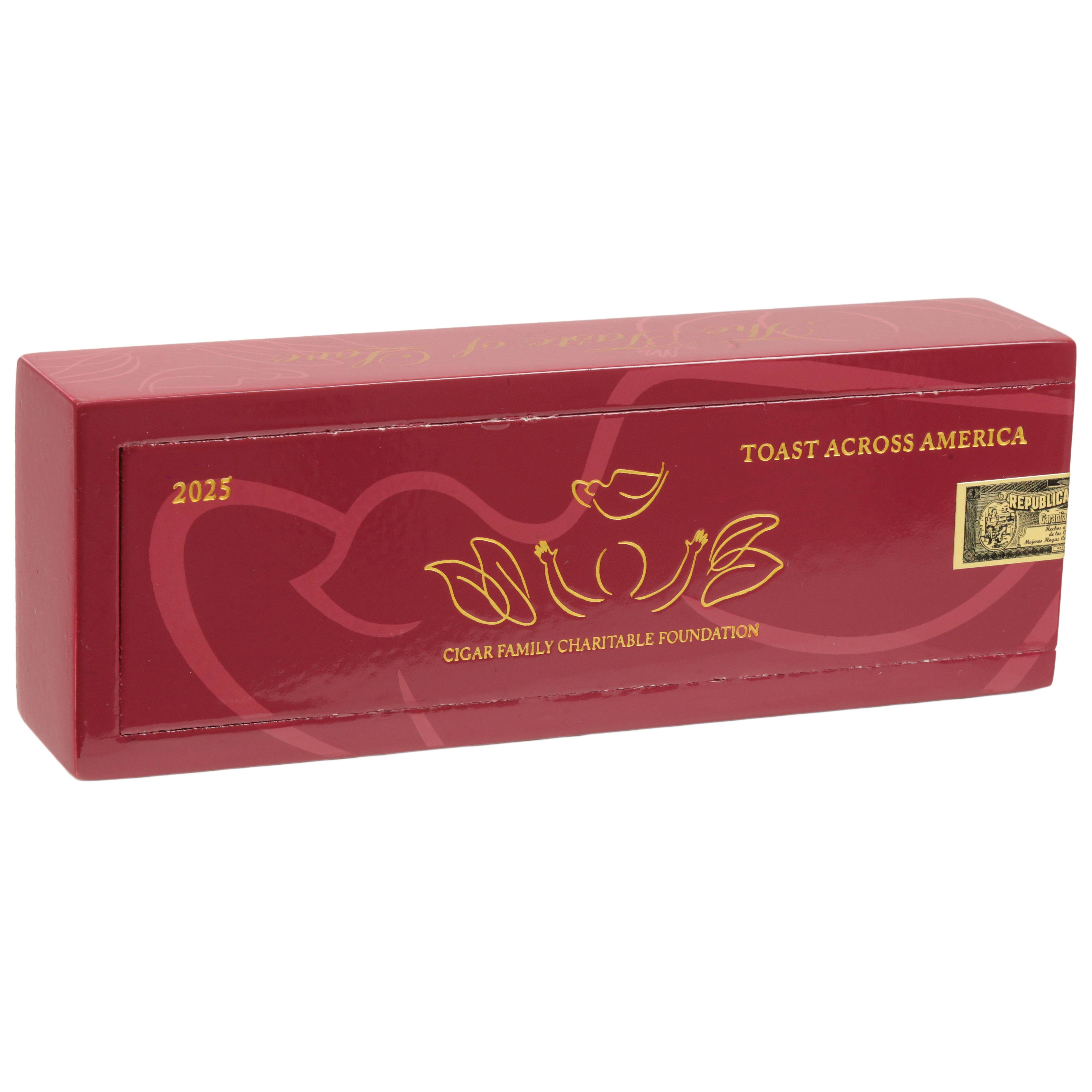 For 13 years, Fuente's Cigar Family Charitable Foundation has been making the Toast Across America cigars, and smoke shops in all the United States and Canada have helped raised over $3 million towards helping impoverished communities in the Dominican Republic. In 2020, the Toast Across America contains two specially made cigars that customers can only get in this sampler: a Diamond Crown Julius Caeser and an Arturo Fuente Opus X in the Shark format. All proceeds from the sale go 100% to the Cigar Family Charitable Foundation, neither retailers nor Newman or Fuente families make one single penny from the sale of these cigars.