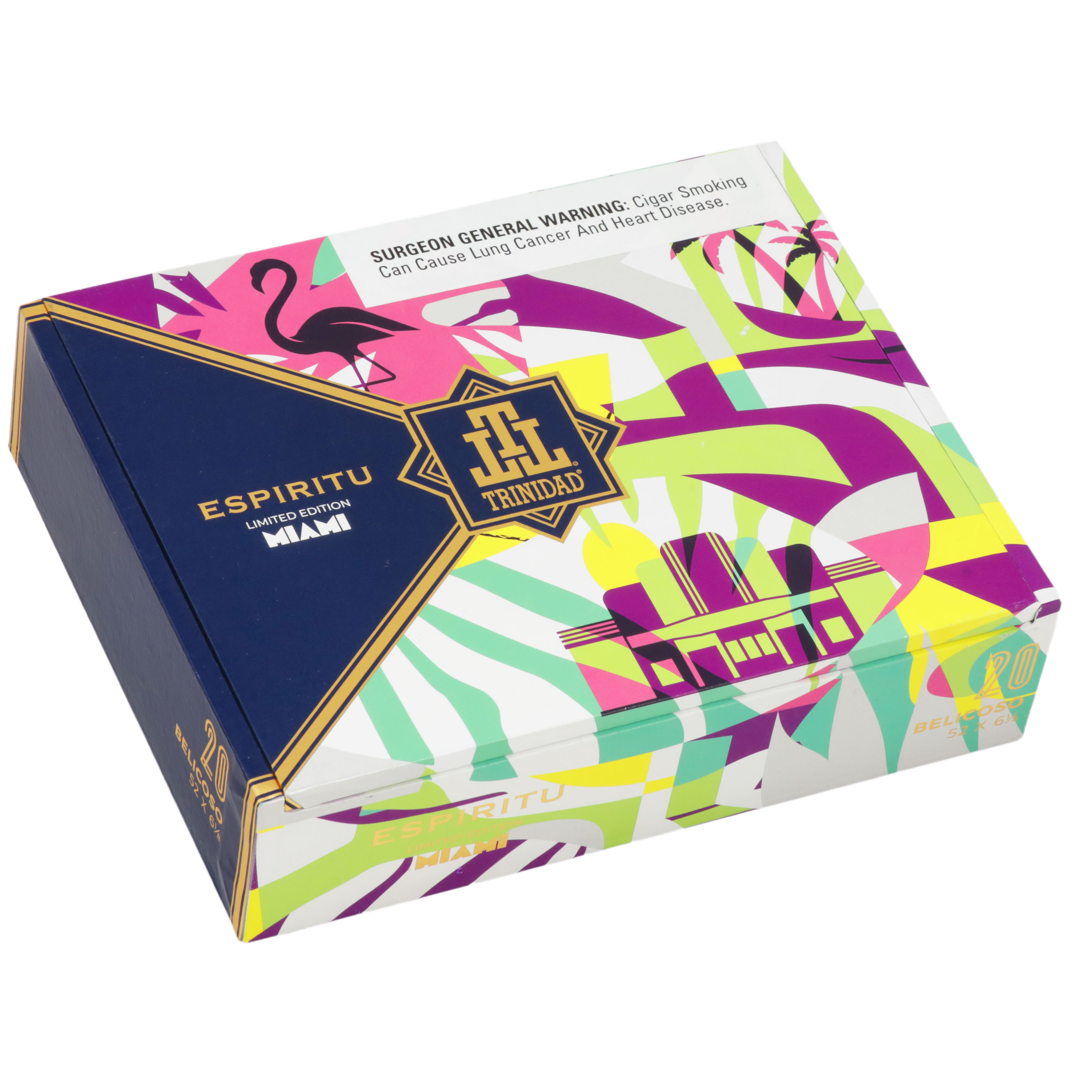 The Trinidad Espiritu Miami Edition channels the energy and flair of the Magic City into a bold, one-size-only Nicaraguan puro. It offers a medium-to-full bodied profile that mirrors the city’s cultural heat and vibrant rhythm. As the newest entry in the Espiritu line, this release trades globetrotting themes for a stateside homage, delivering a smoke as lively and distinctive as its namesake. Rolled by AJ Fernandez in Nicaragua, this 6"1/8 x 52 belicoso arrives dressed in vivid, Miami-inspired packaging and is limited to just 4,000 boxes of 20.