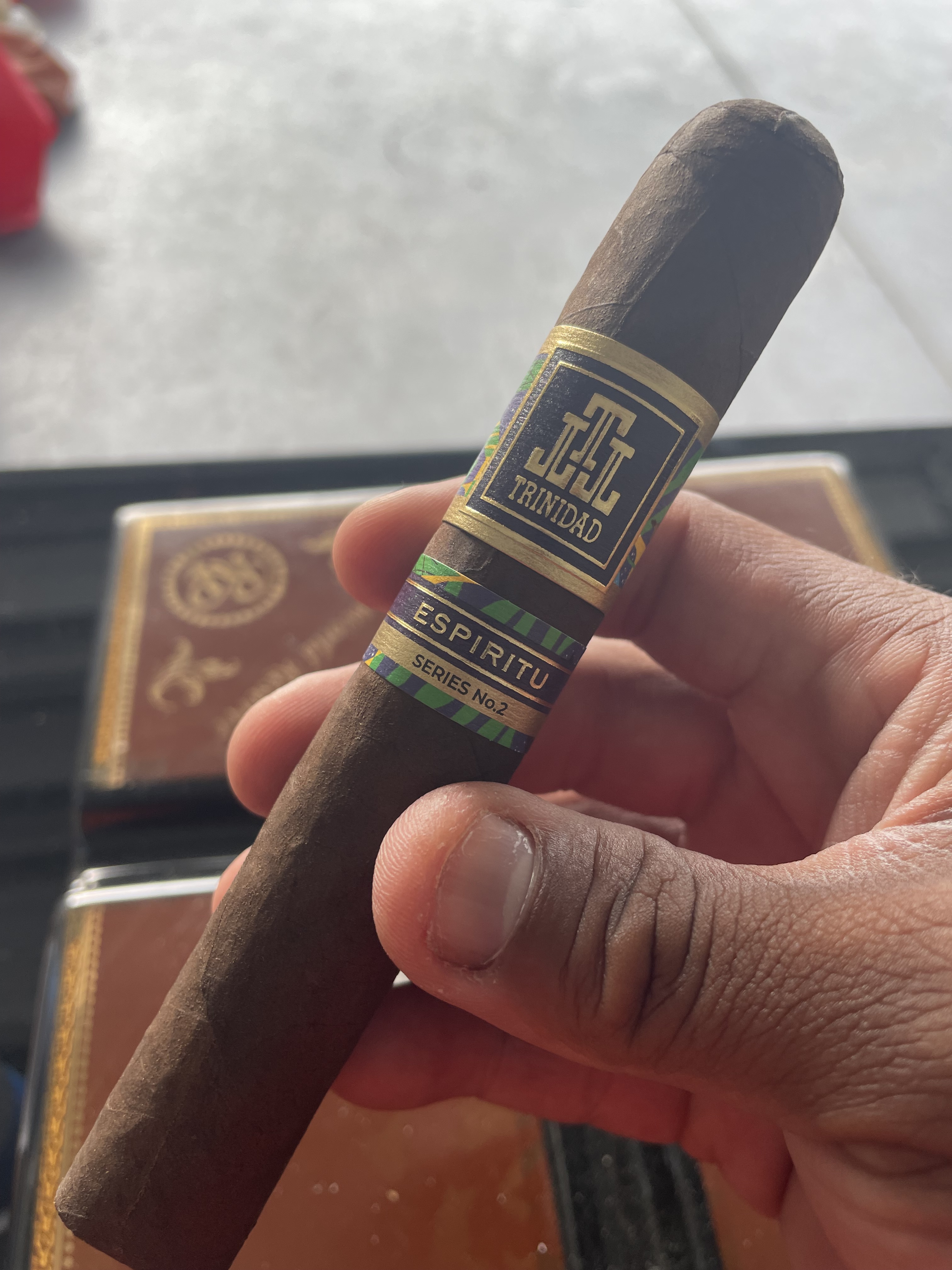 A balanced, medium-strength cigar with a complexity of flavors and an earthy undertone. Its Brazilian Arapiraca maduro wrapper covers a Nicaraguan binder, and a Brazilian and Nicaraguan filler. Handmade at the Tabacalera Fernandez factory in Nicaragua, the Trinidad Espiritu Series No. 2 is a collaboration between two master cigar crafters: AJ Fernandez and Rafael Nodal. Enjoy this fine cigar even more by listening to the Trinidad Espiritu Series No. 2 playlist featuring some of Brazil’s top recording artists on Spotify. Go to www.spotify.com and look up Trinidad Espiritu Series No. 2.