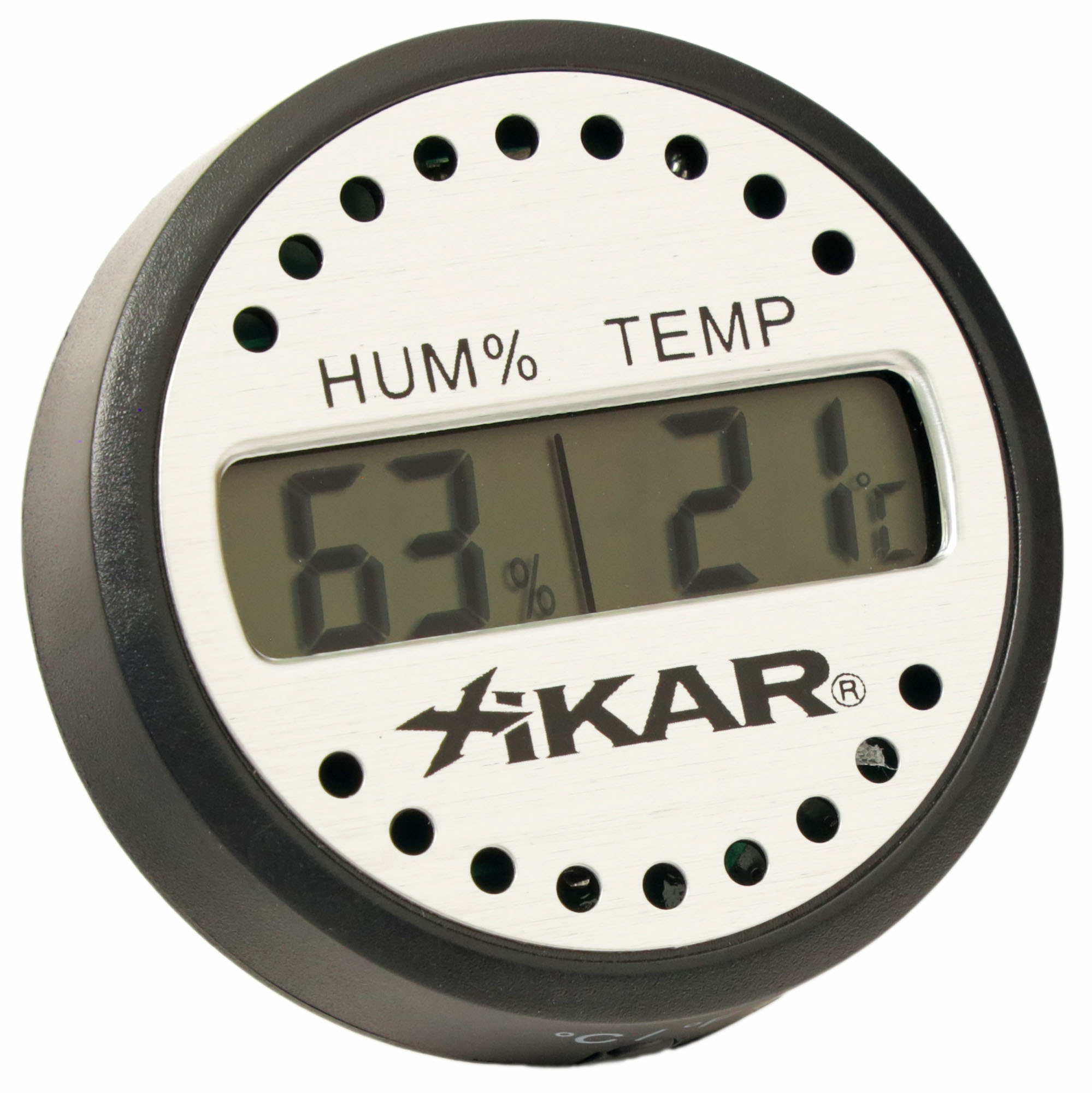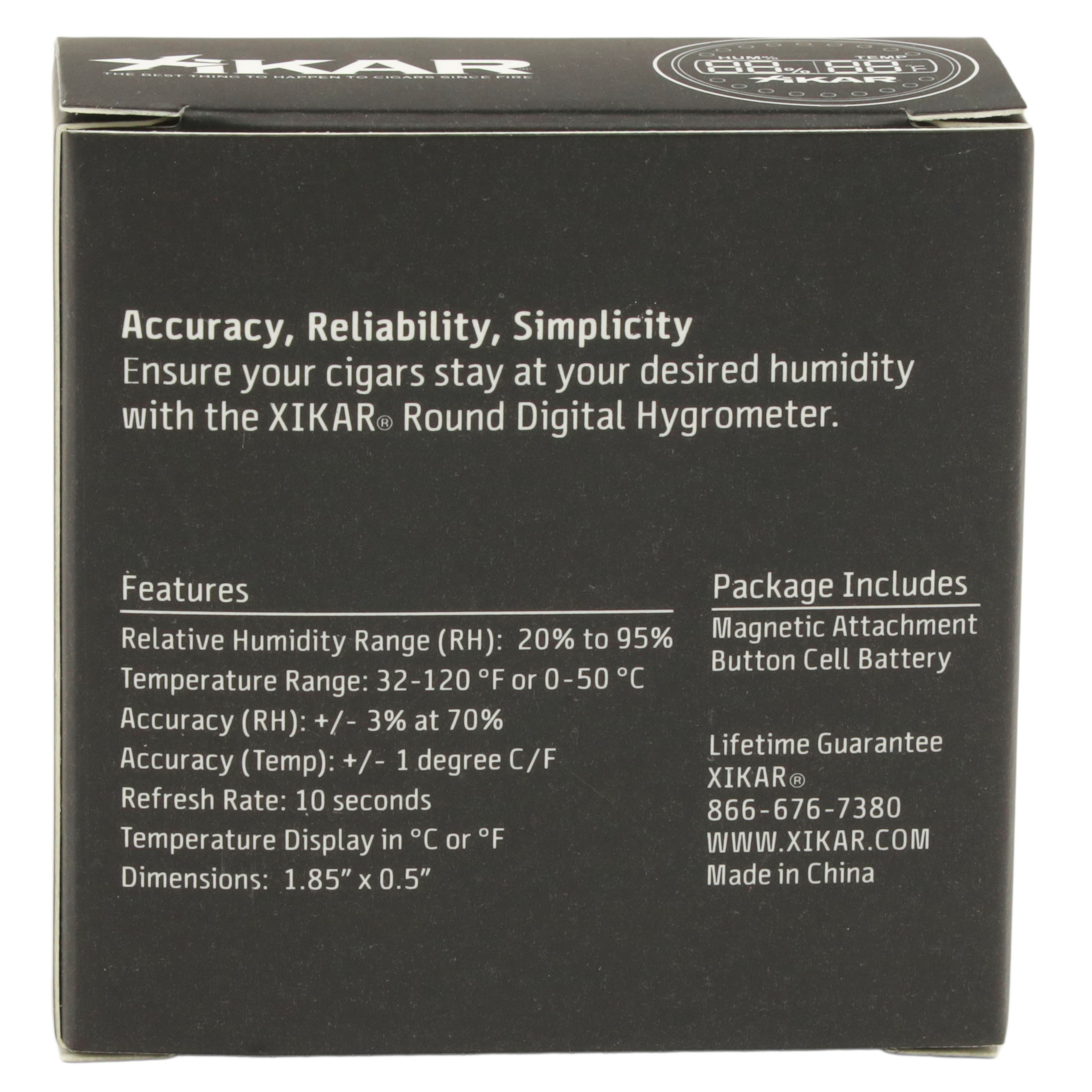 XIKAR PuroTemp round digital hygrometer has been designed for long term accuracy and minimal maintenance. They accurately display the relative humidity and temperature in your humidor. The back size is a standard 1.75" . You can now upgrade your old analog to a digital with the XIKAR PuroTemp Round Digital Hygrometer. Features: Accurate to +/- 2% at 70% humidity. Reads humidity in the range of 20% to 95%. Registers temperature in Fahrenheit and Celsius.