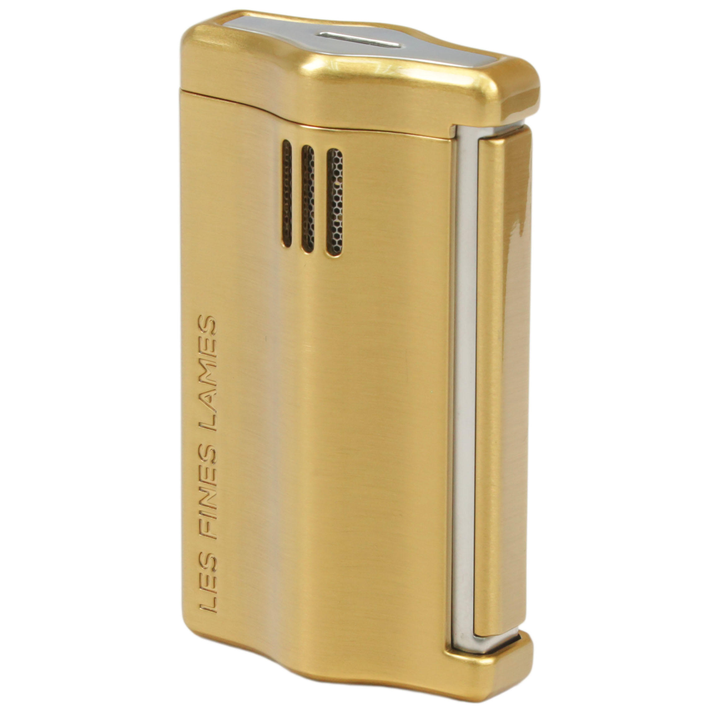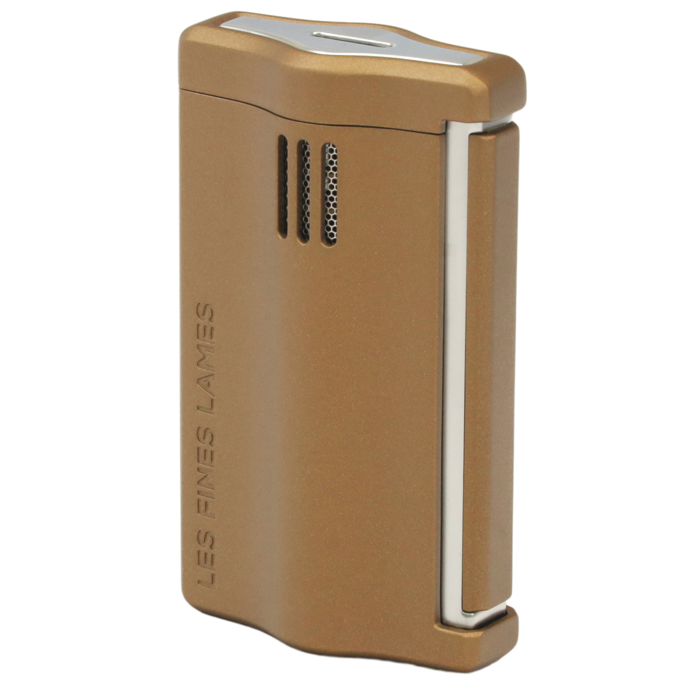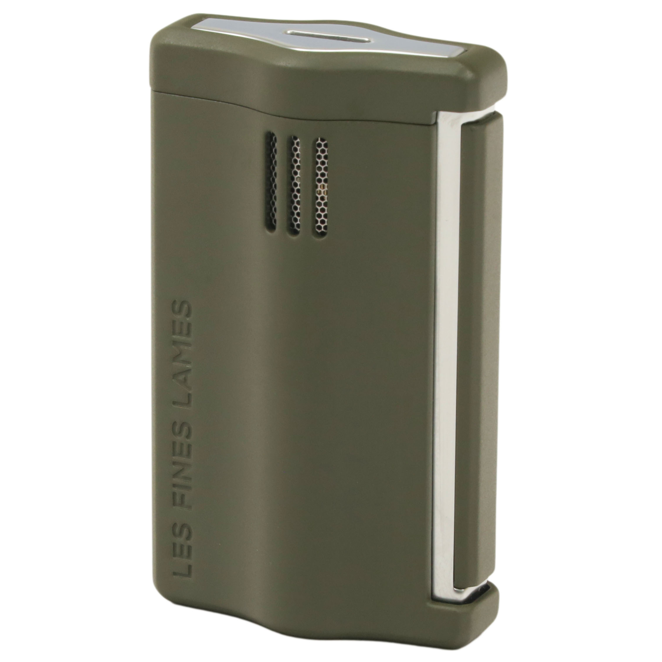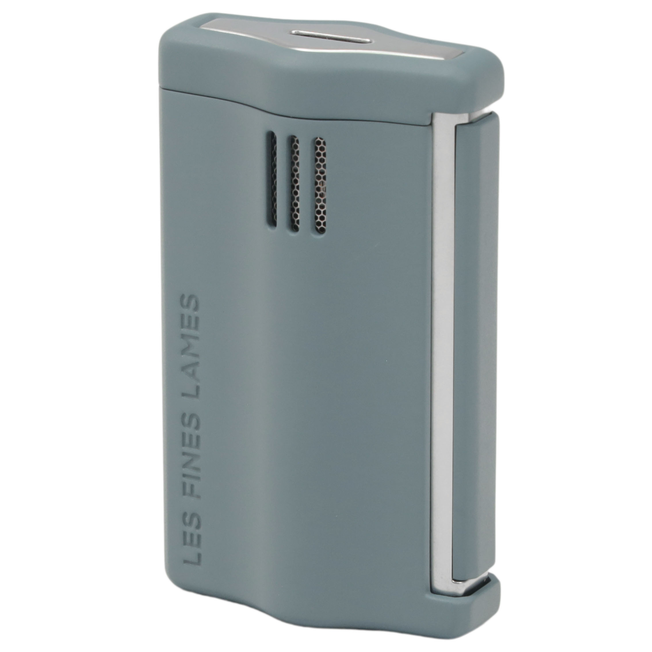 The Le FEU RS is a cigar band-inspired lighter designed to elevate the ritual of cigar enjoyment with a bold silhouette and premium finish. It delivers a powerful flat flame with its side-squeeze ignition, supported by an ergonomic grip, adjustable flame settings, and a gas tank window for easy monitoring, and is backed by a two-year international warranty. Ships empty. Butane sold separately. Dimensions: 2.6" x 1.6" x 0.4".