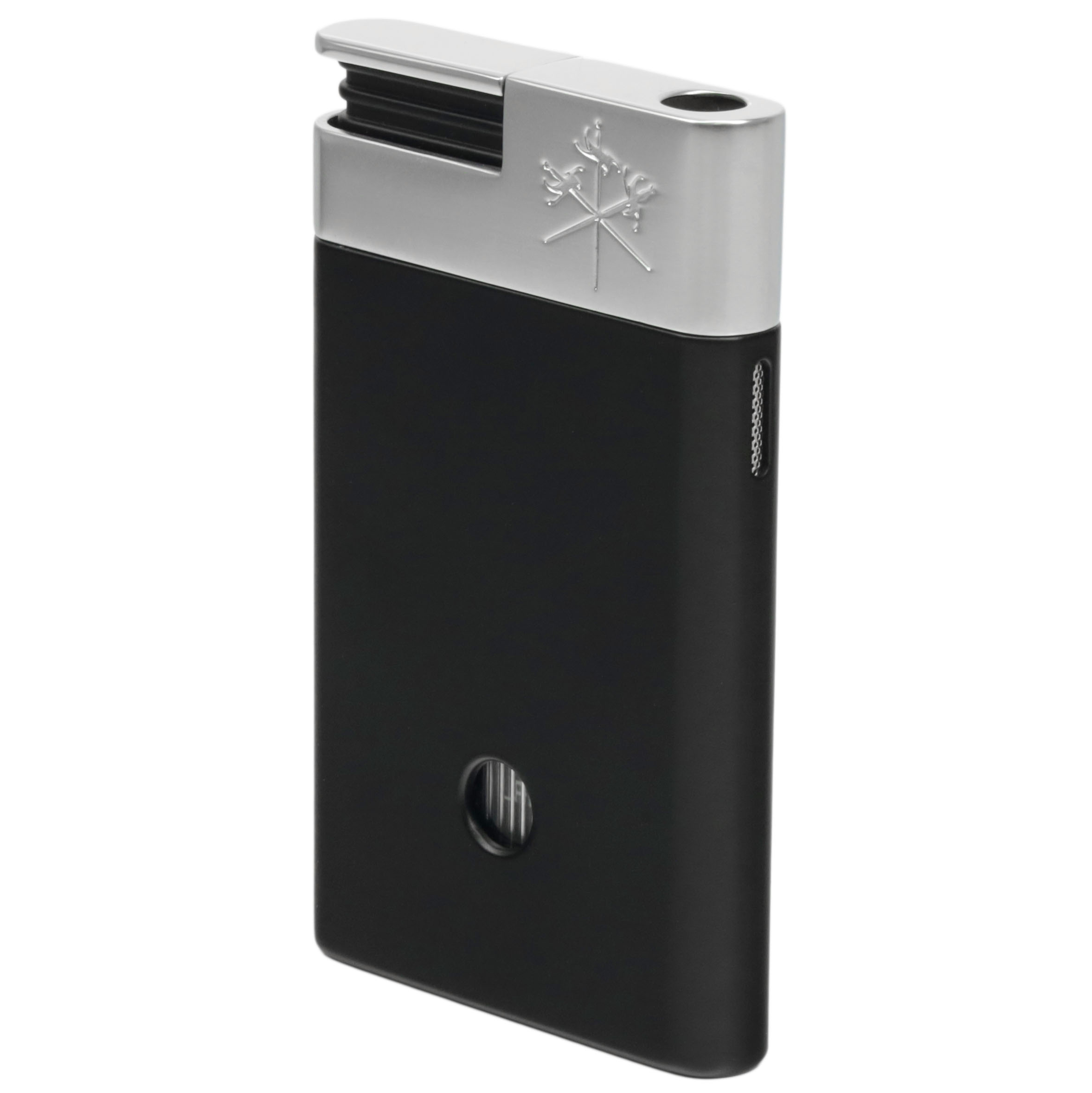 The Le FEU Svelt is a slim, single torch-style lighter that balances minimalist elegance with everyday functionality. Its lightweight stainless-steel body features the iconic Les Fines Lames Leaves motif under a premium lacquer finish. It delivers a powerful 2 cm blue torch flame, perfect for precise cigar lighting, complete with adjustable flame control, a gas tank window, and an easy butane refill system.Ships empty. Butane sold separately. Dimensions: 2.6" × 1.6" × 0.28".