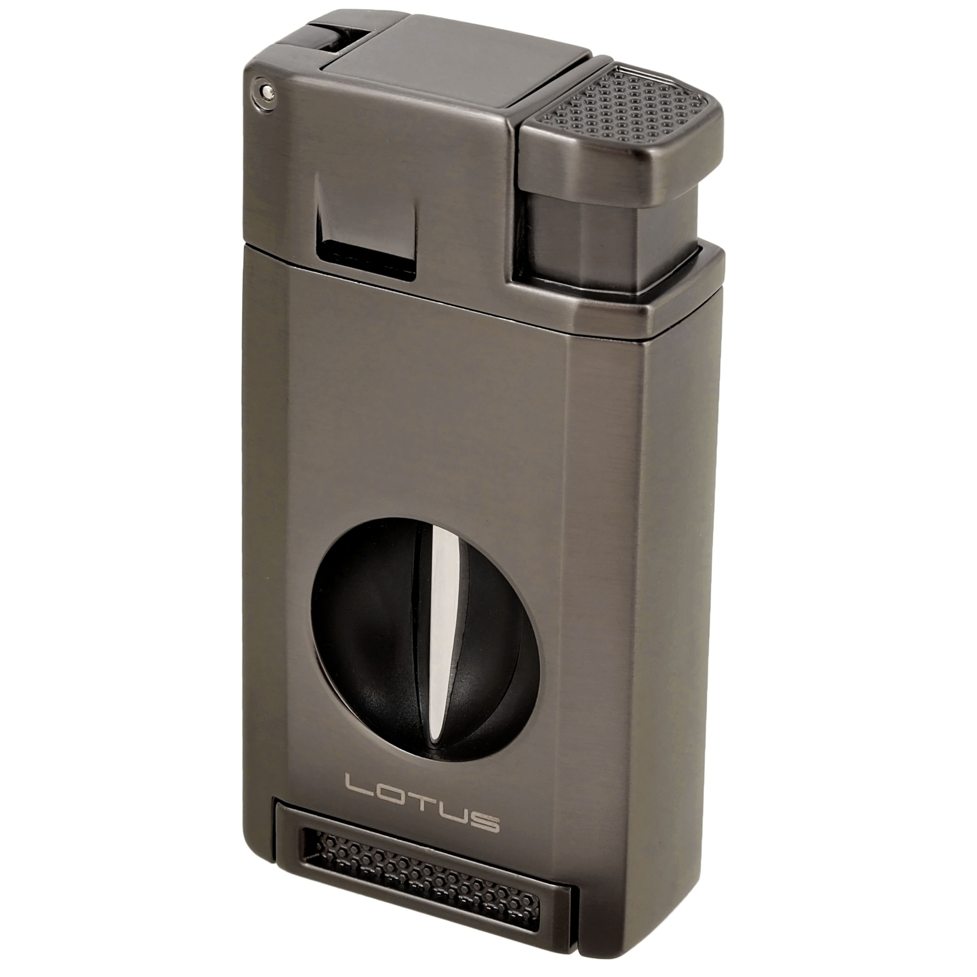 The Excalibur has everything you need to cut and light your cigars anytime, a flip-out punch cutter, is designed to cut up tp a 60-ring gauge cigar with its deep V-cutter and its easy-to-read fuel level viewing window lets you know when you are running low on fuel. Gift Boxed. Ships Empty.