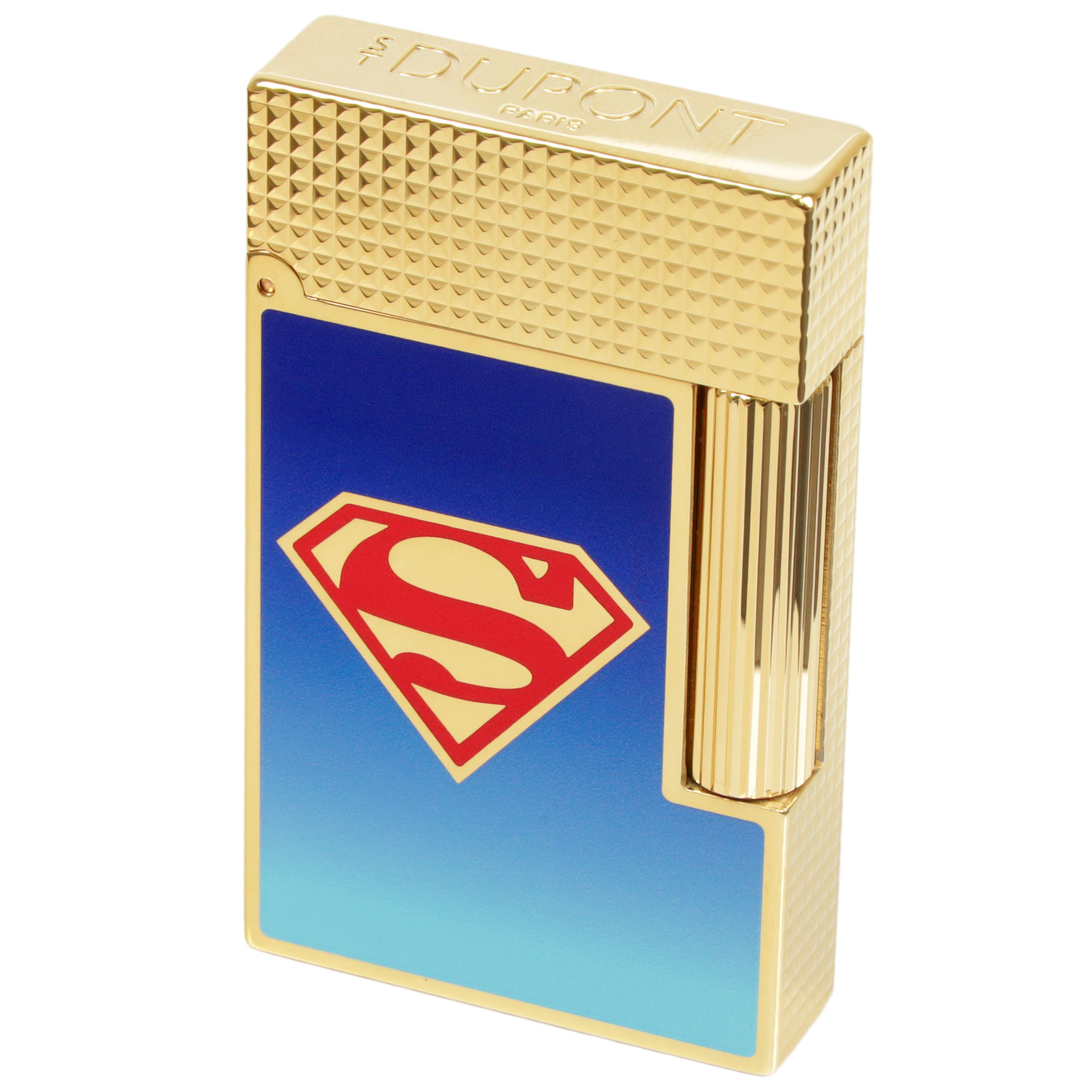 Bold, iconic and exquisitely crafted, the Line 2 Perfect Ping Superman lighter celebrates the legendary hero with unmistakable style. A rich blue lacquer gradient evokes the skies of Metropolis, while the shimmering gold-finish case and the vivid red and yellow “S” emblem deliver a striking tribute to Superman’s legacy. Engineered in brass and finished with S.T. Dupont’s signature “cling” sound on opening, the hallmark of the Perfect Ping mechanism, this piece is a fusion of high-luxury craftsmanship and collector-level design. Equipped with a reliable double yellow flame and finished with meticulous detailing, pocket sized art worthy of The Man of Steel.